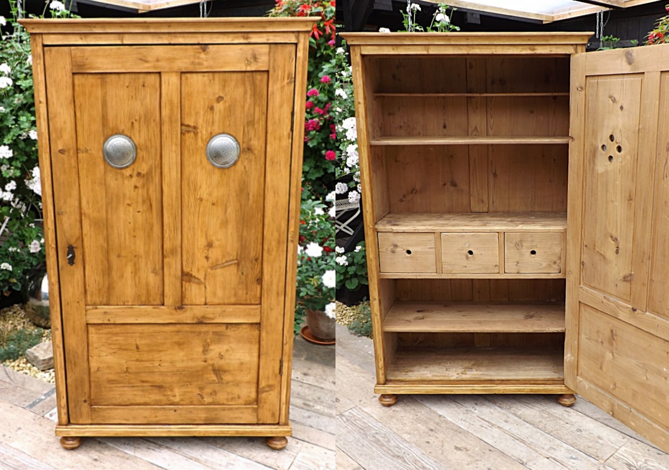 Old Antique Pine Larder / Linen / Kitchen / Food Cupboard / Internal Drawers. We Deliver!