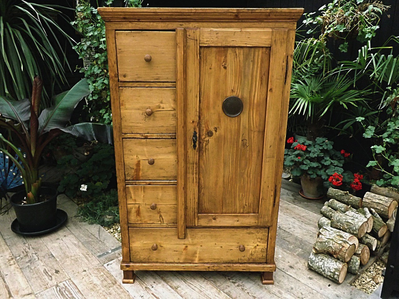Old Antique Pine Storage Cupboard - Food / Linen / Kitchen / Larder / Cabinet