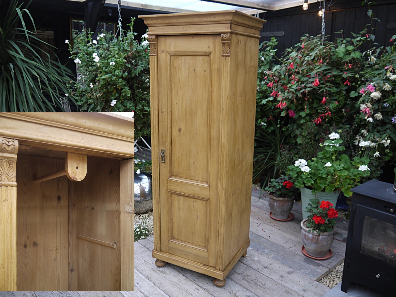 Old Antique Pine Tall Slim Cabinet / Linen / Larder / Food / Cupboard / Guest / Child's Wardrobe Inc. RAil