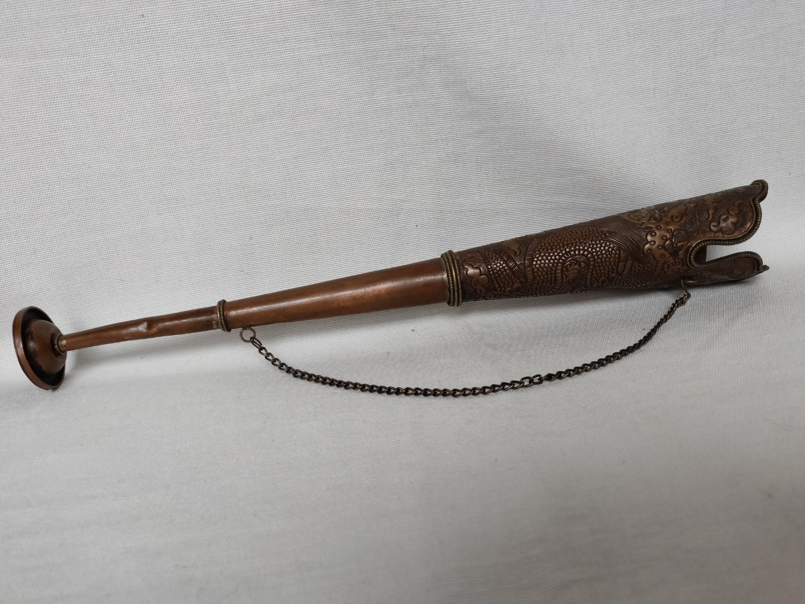 Old Authentic Chinese Tibetan Copper & Brass Horn Embossed with Dragons