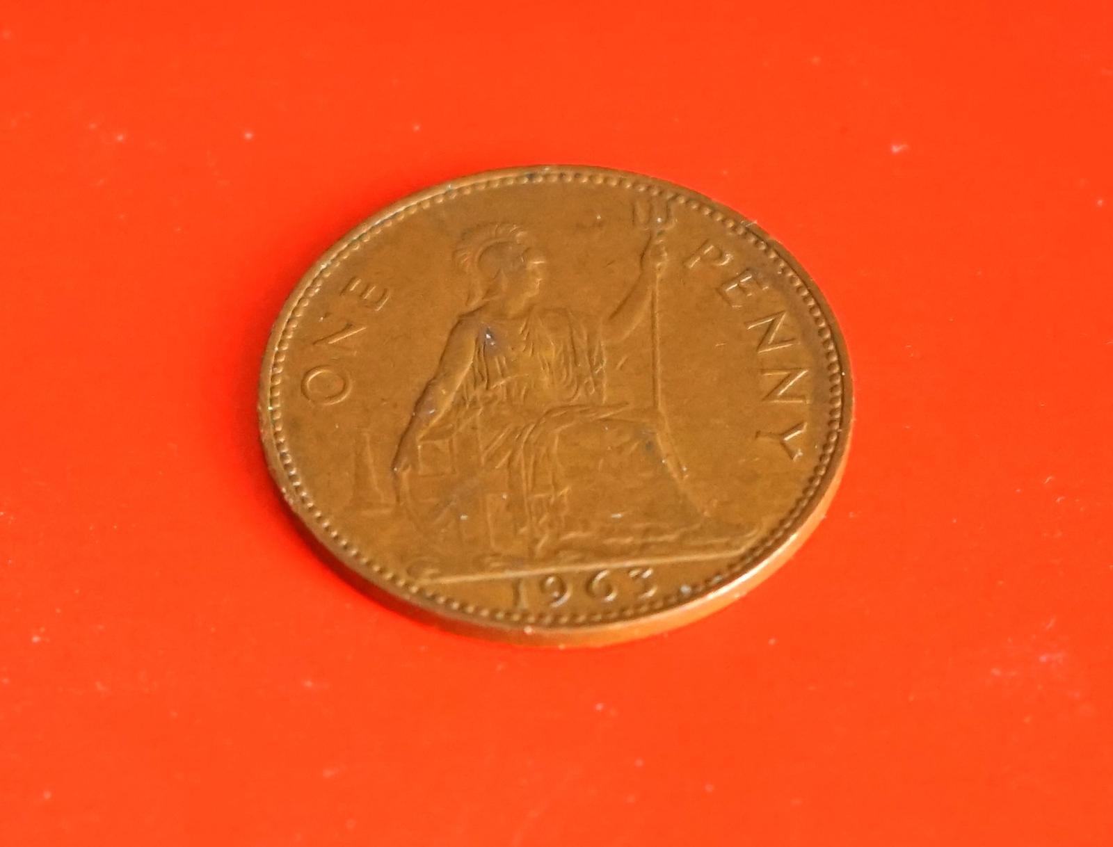 This Old British Rare 1963 One Penny Coin is located in East Sussex, United Kingdom