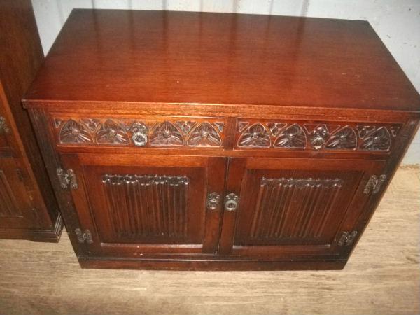 Old Charm Linenfold Carved Oak 2 Door Cupboard