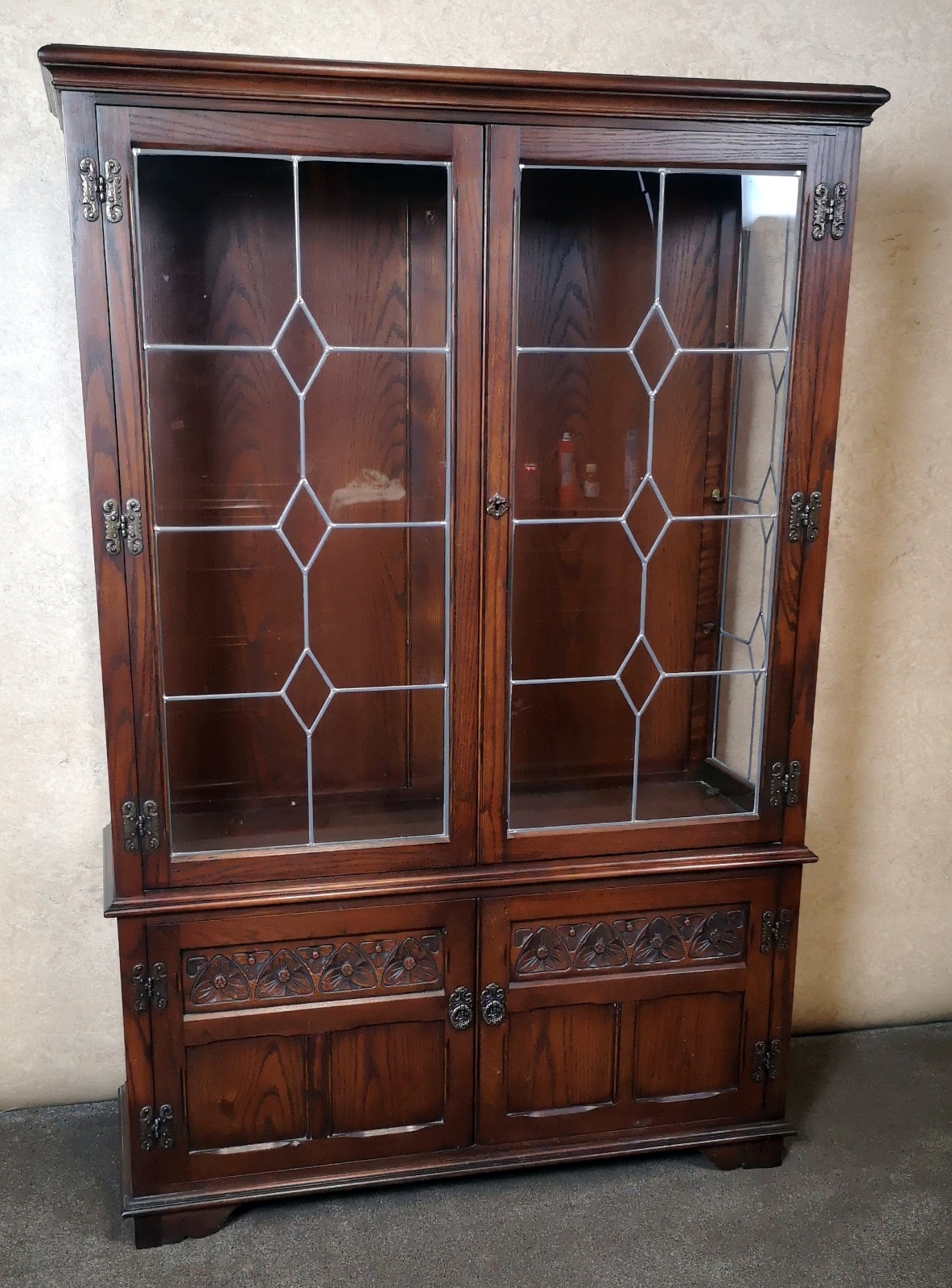 Old Charm Wood Bros Oak Display Cabinet / Tudor Brown