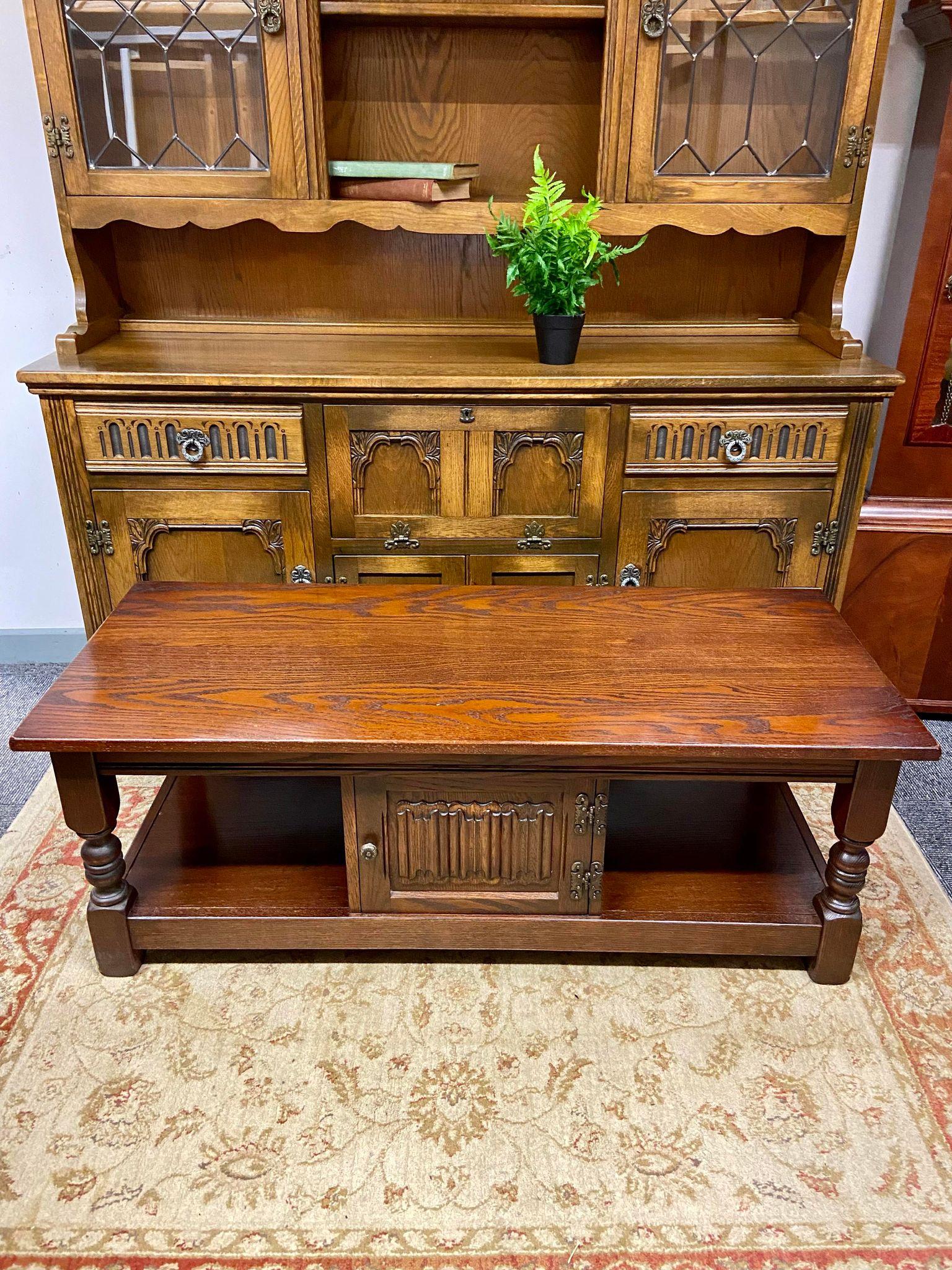 Old Charm Wood Bros / Occasional Long Table / Coffee Table / Tudor Brown Traditional Colour - Made in England 1970s
