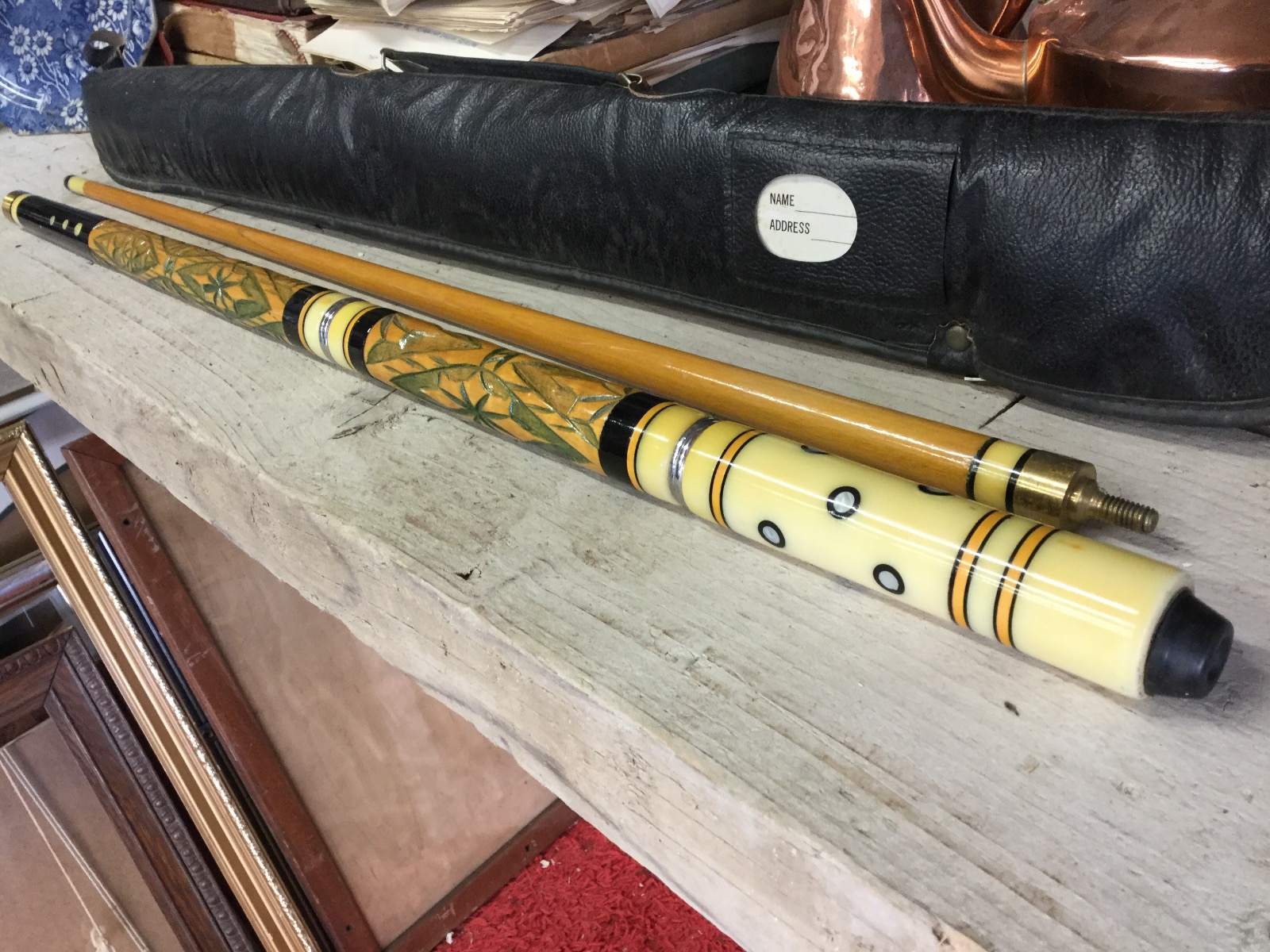 Old Custom Hand Made Carved & Inlaid Pool Cue
