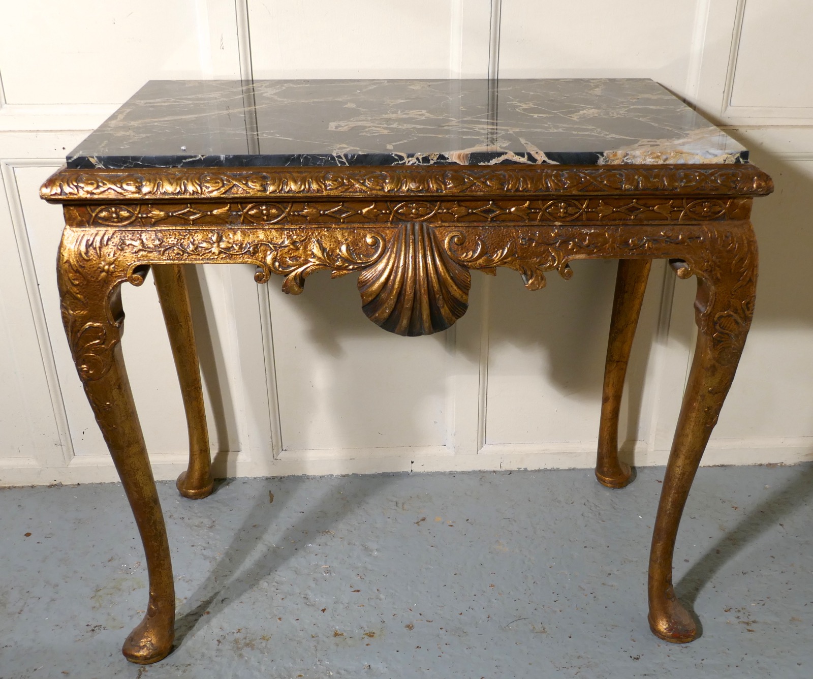 Old French Marble Top Gilt Console or Hall Table