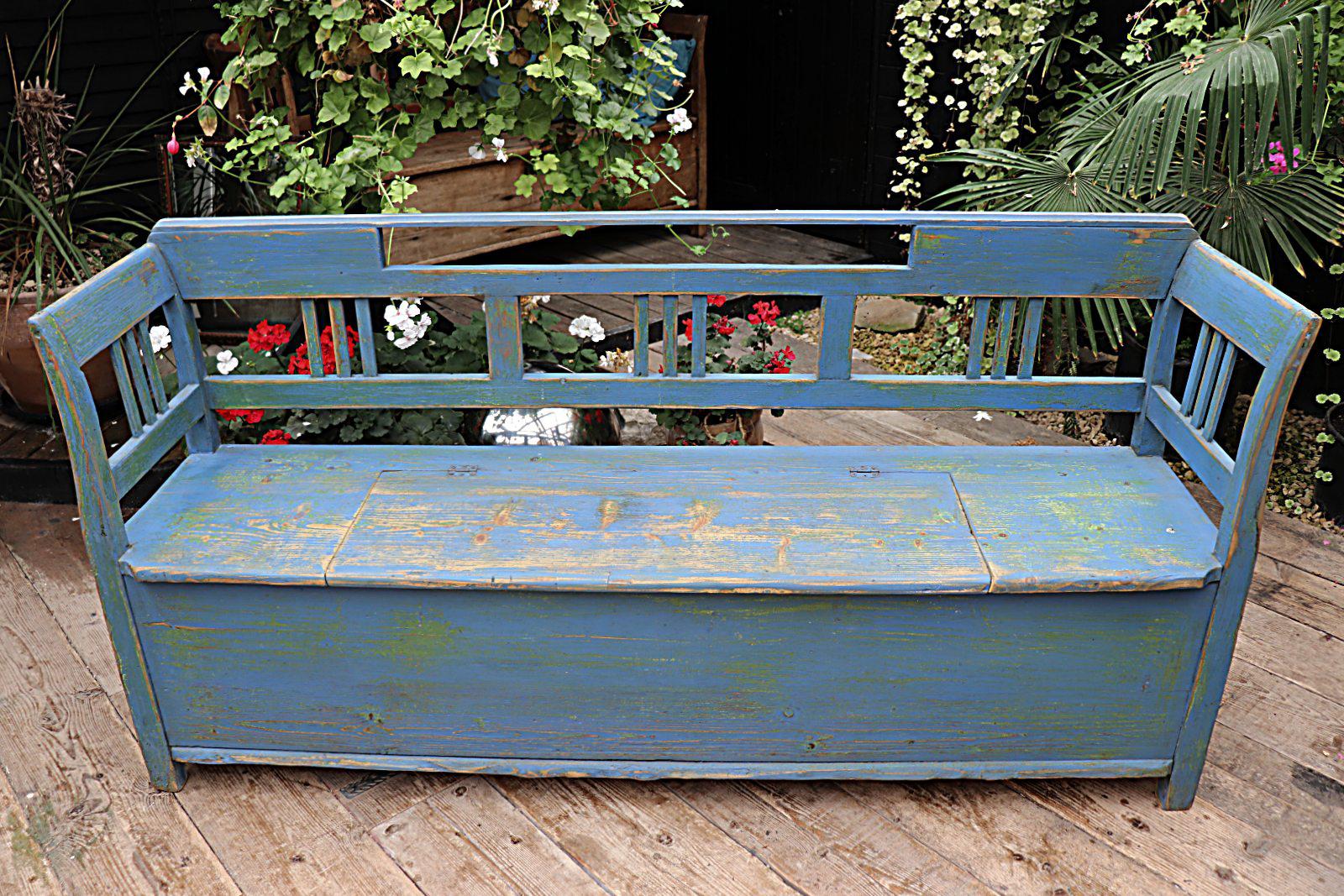 Old Georgian Pine & Painted Hungarian Box / Storage Bench / Settle - We Deliver
