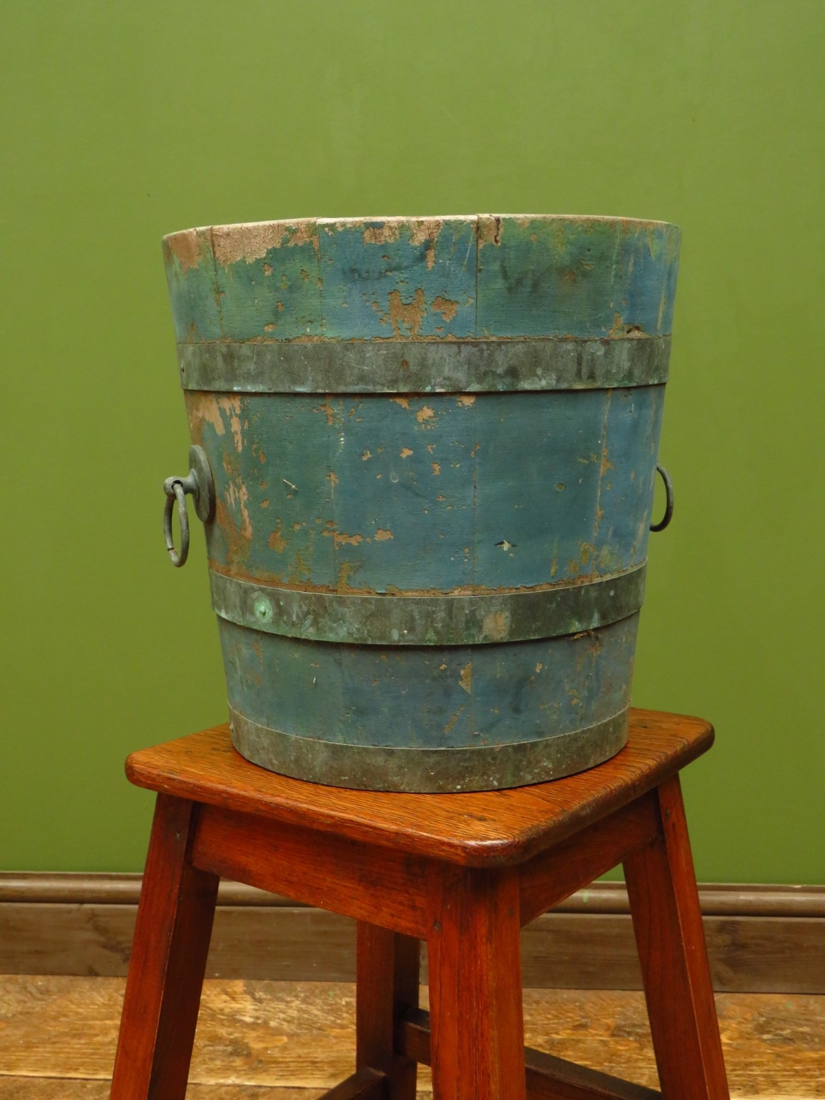 Old Painted Primitive Wooden Bucket Tub Planter Kindling Bucket with Green Paint