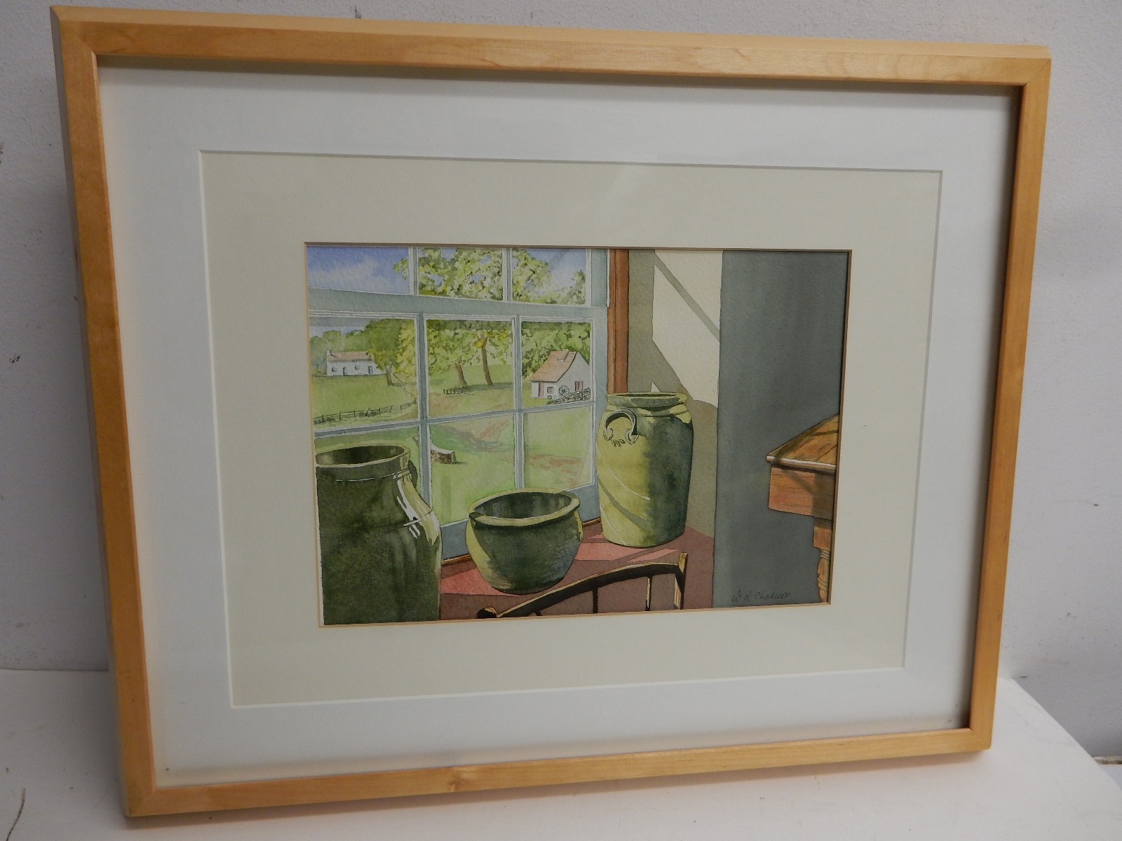 Old Painting Watercolour the Window View Signed