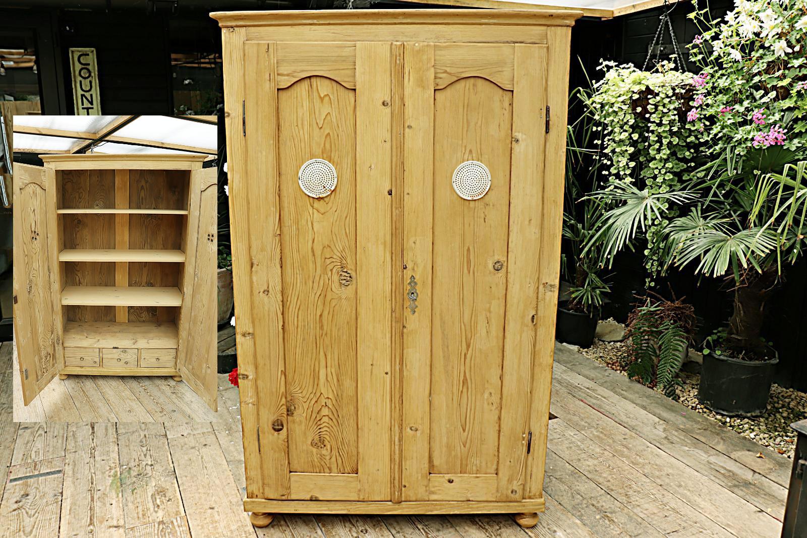 Old Pine 2 Door Cupboard / Linen / Food / Larder / Wardrobe with Drawers - We Deliver!