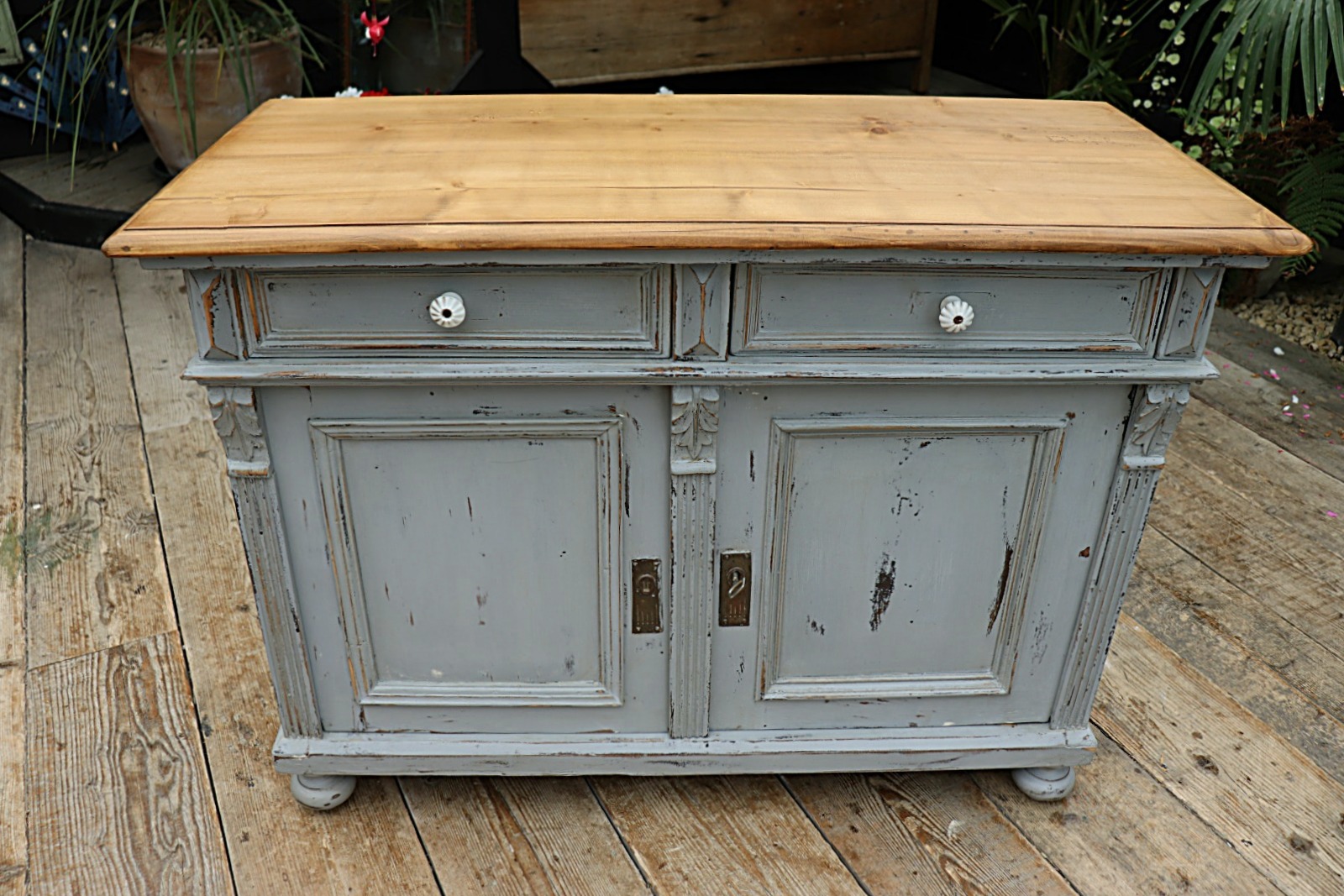 Old Pine / Grey Painted Dresser Base / Sideboard / Cupboard / TV Stand - We Deliver!