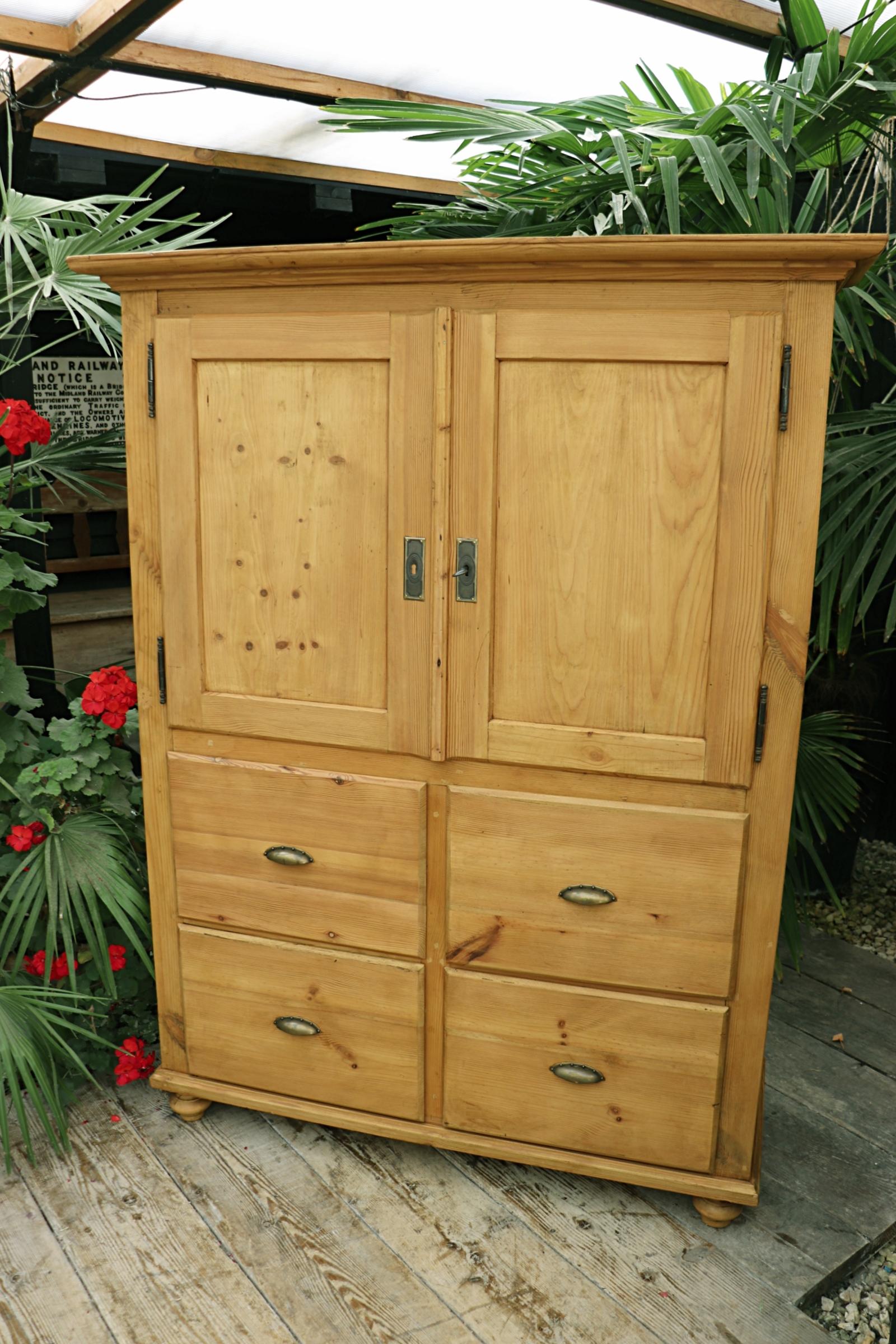 Old Pine Linen Press Cupboard / Larder / Food / TV Cabinet / Wardrobe