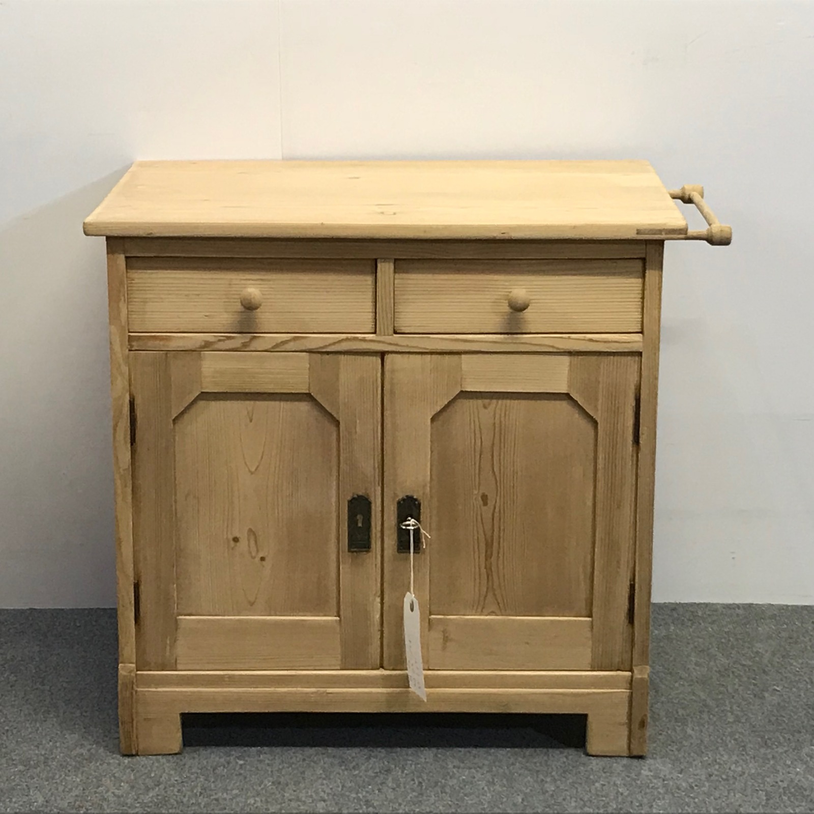 Old Pine Storage Cupboard with Towel Rail & Chopping Board c.1920