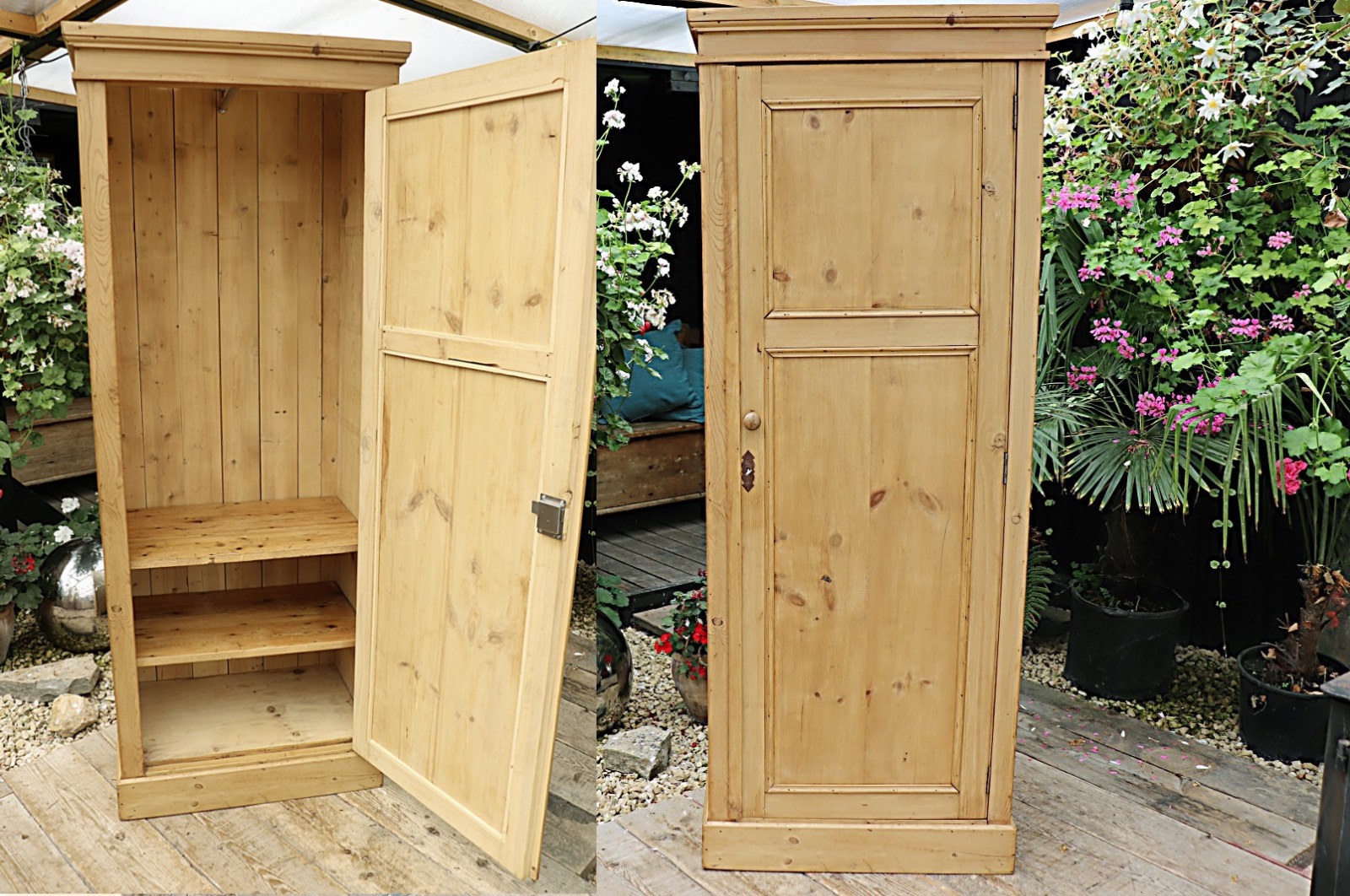 Old Stripped Pine Narrow Cabinet / Linen / Larder / Cupboard / Wardrobe - We Deliver
