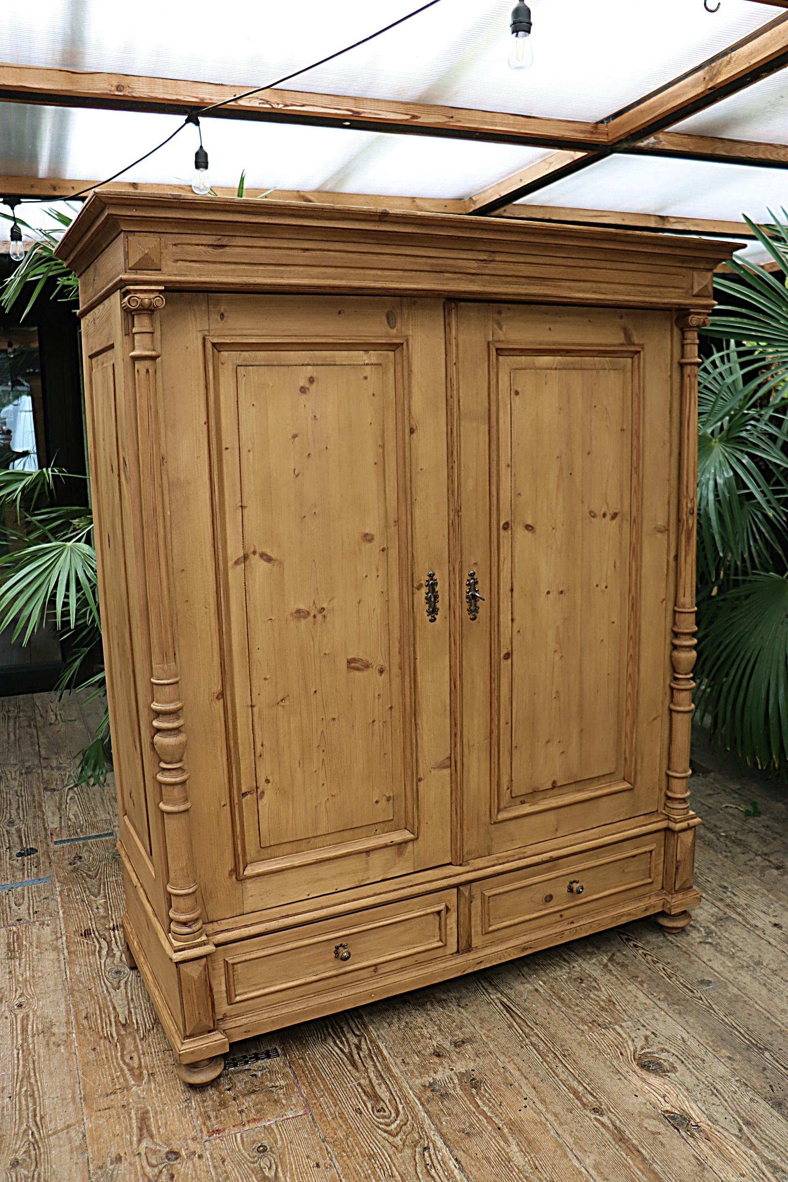 Old Victorian Pine Double Knock Down Wardrobe - Cottage Height