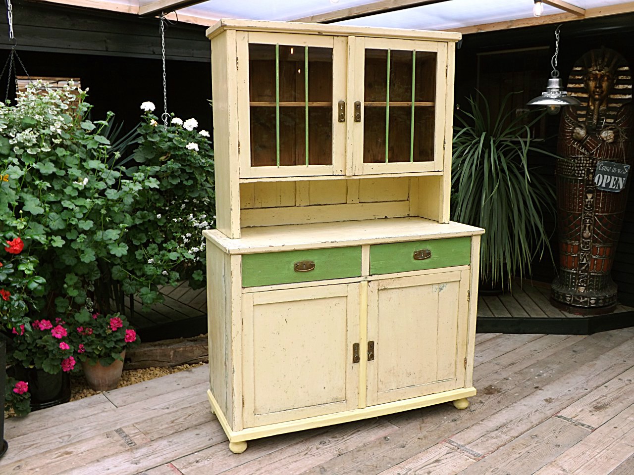 Old Vintage Pine & Painted 2 Piece Glazed Dresser