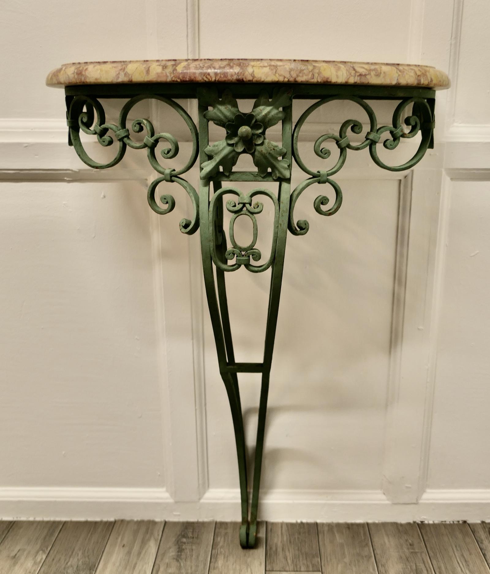 Old Wrought Iron French Marble Console or Hall Table