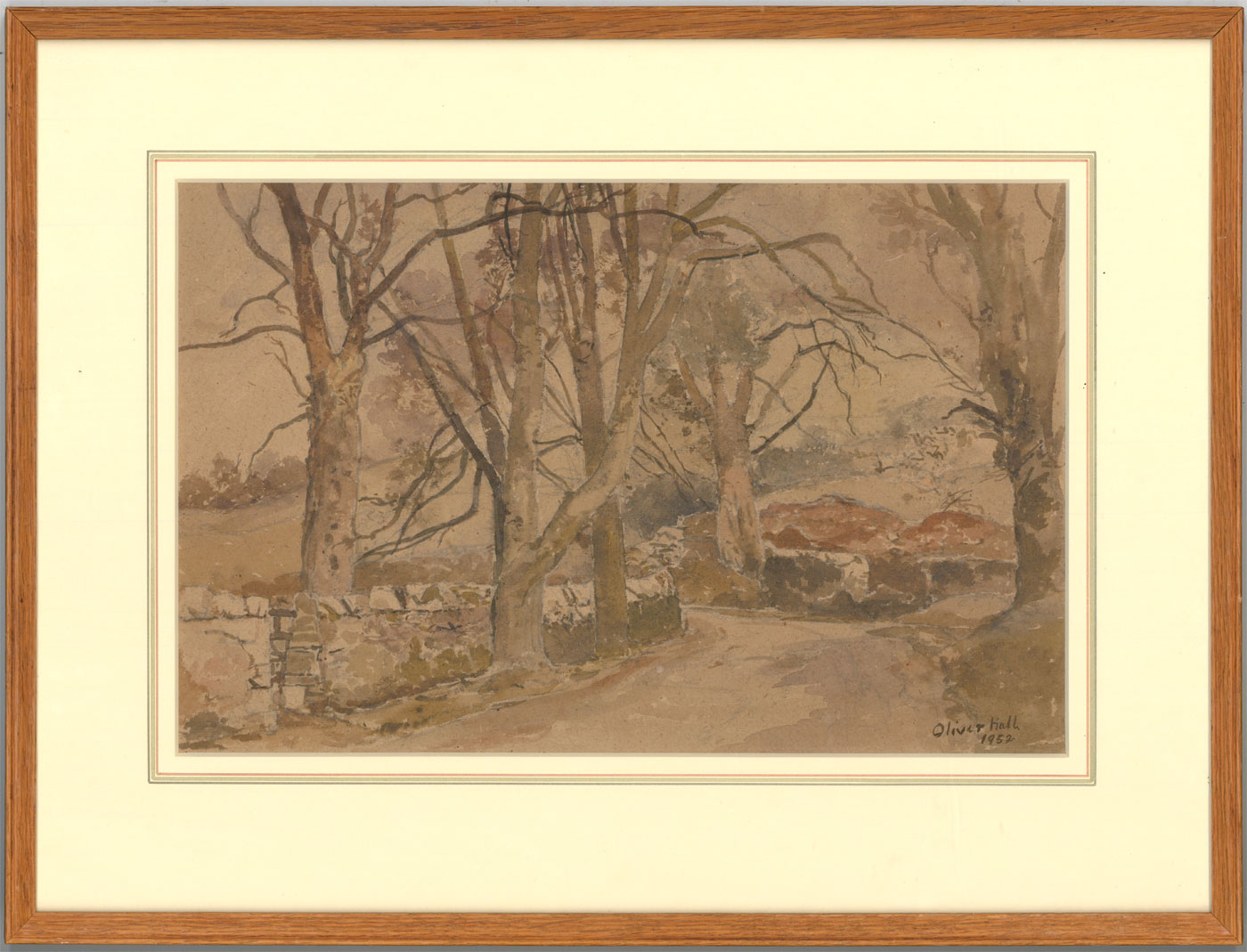 Oliver Hall RA Re Rws - Double Sided 1952 Watercolour, Winter Landscape