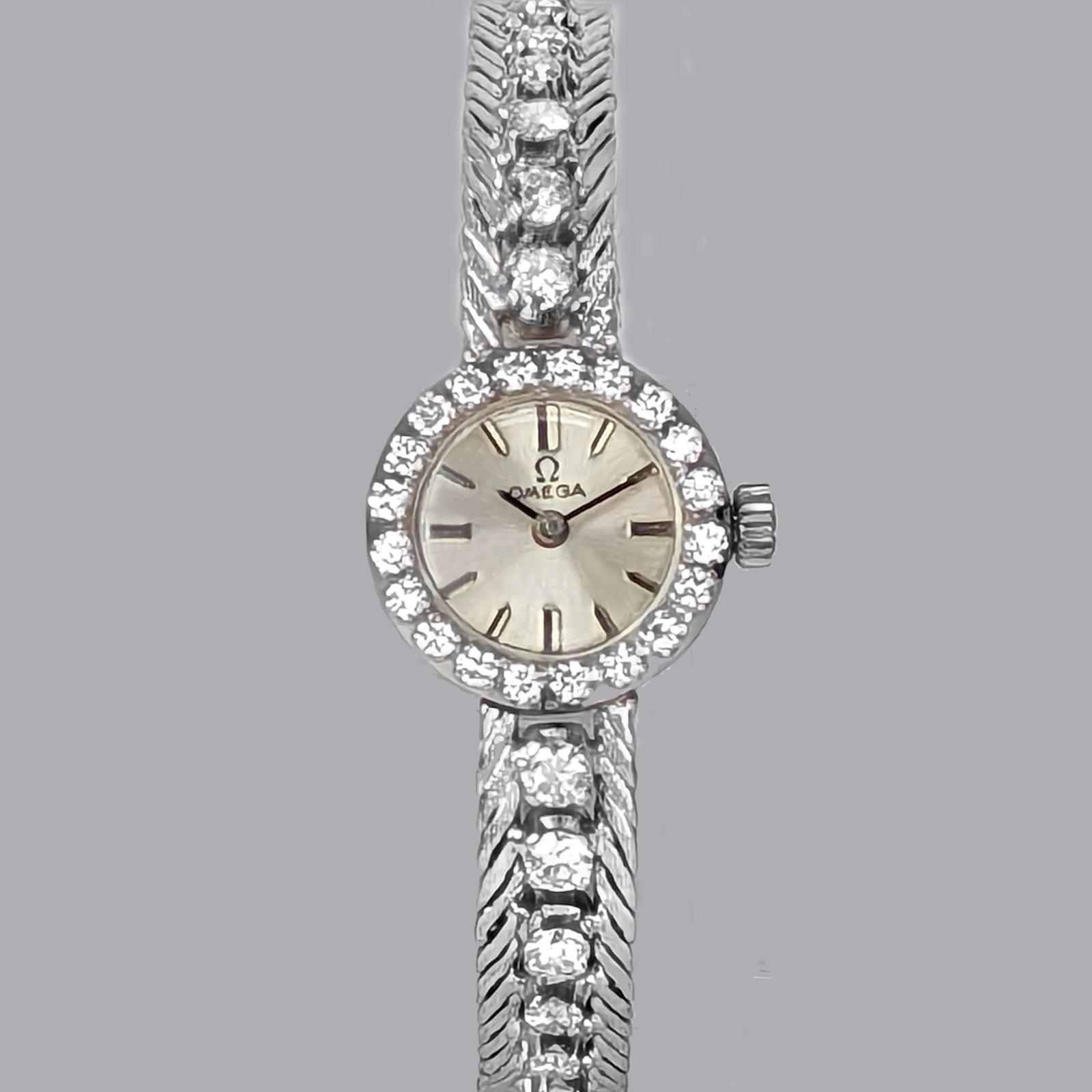 Omega Diamond Watch 18ct Gold Vintage 1960s Manual Wind Ladies Bracelet Watch