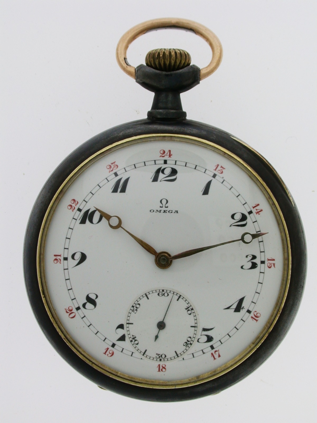 Omega Gunmetal Open Face Pocket Watch Swiss 1900 (1 of 1)