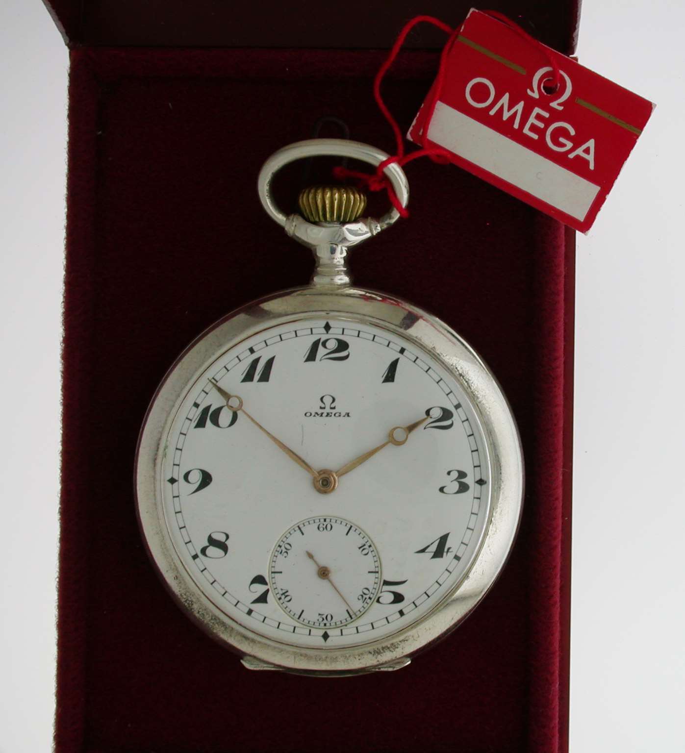 Omega Silver 0.800 Open Face Pocket Watch 1917 in Original Omega Box & Pouch
