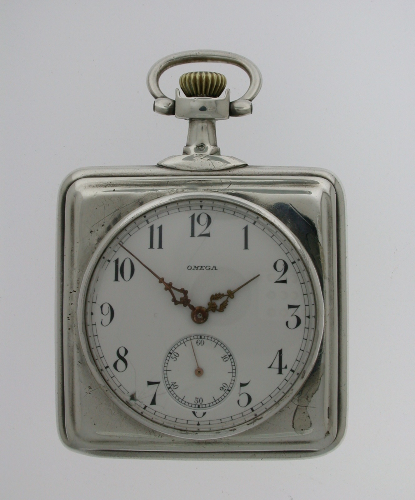 Omega Silver Square Open Face Pocket Watch Swiss 1910 (1 of 1)