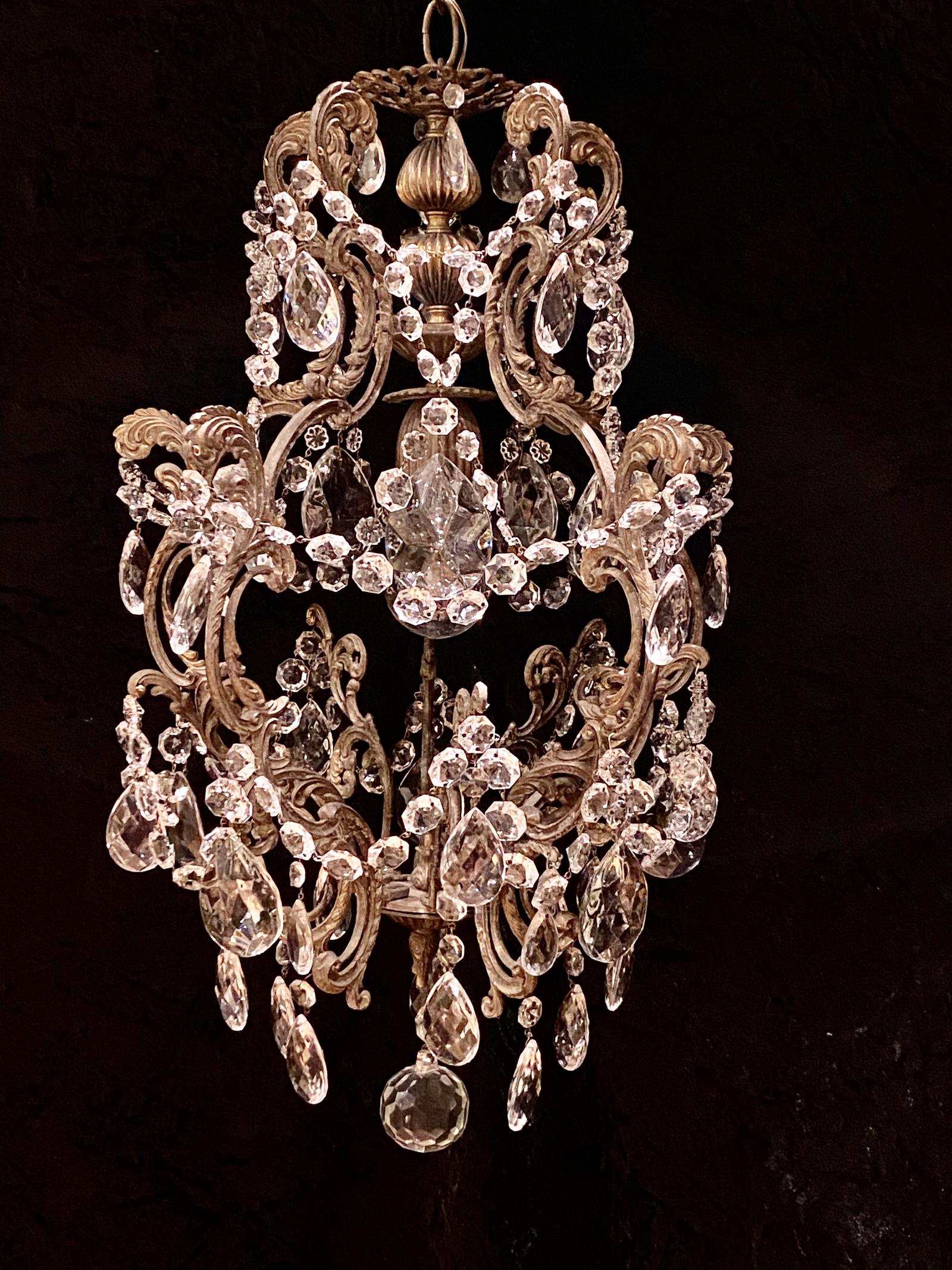 One Light Italian Scrolling Framed Chandelier