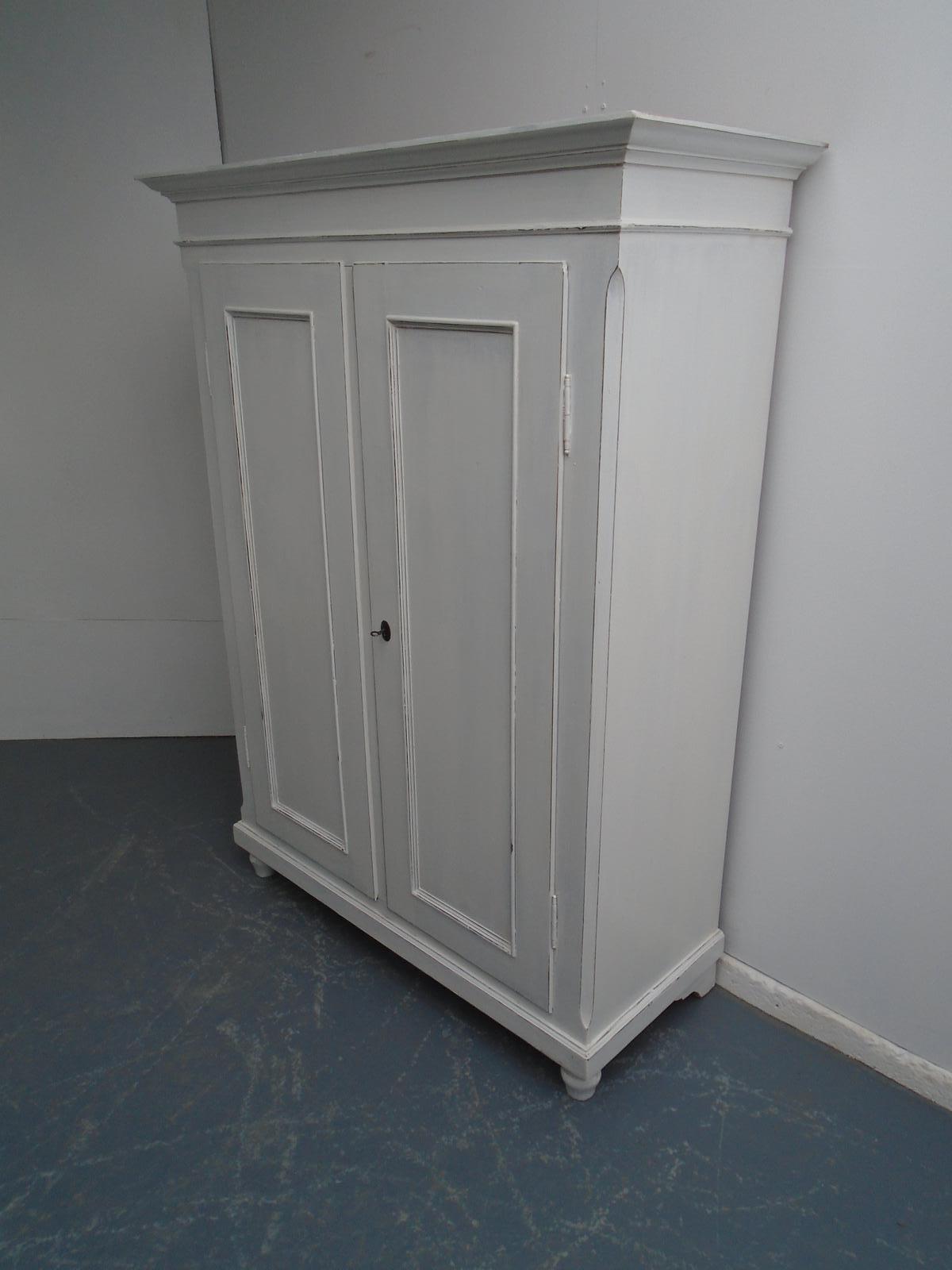 One Piece Victorian Antique Pine Painted White Hall / Child's Wardrobe