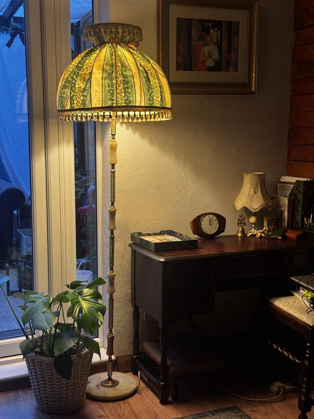 Onyx & Brass Floor Lamp / Made in England c.1930