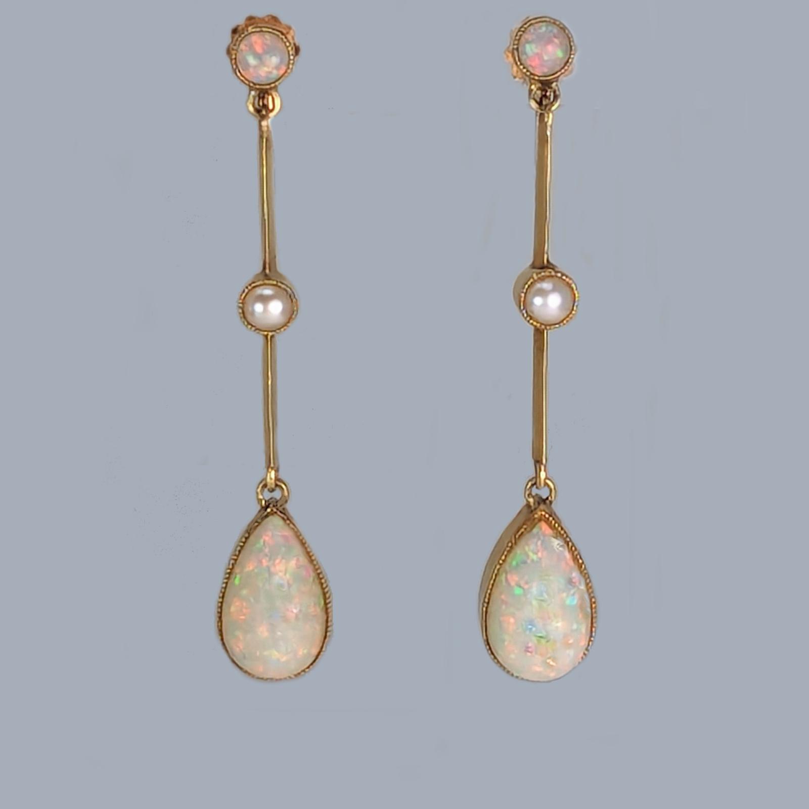 Opal and Pearl Drop Earrings 15ct Gold Art Deco Dangle Earrings Antique Pendant Earrings