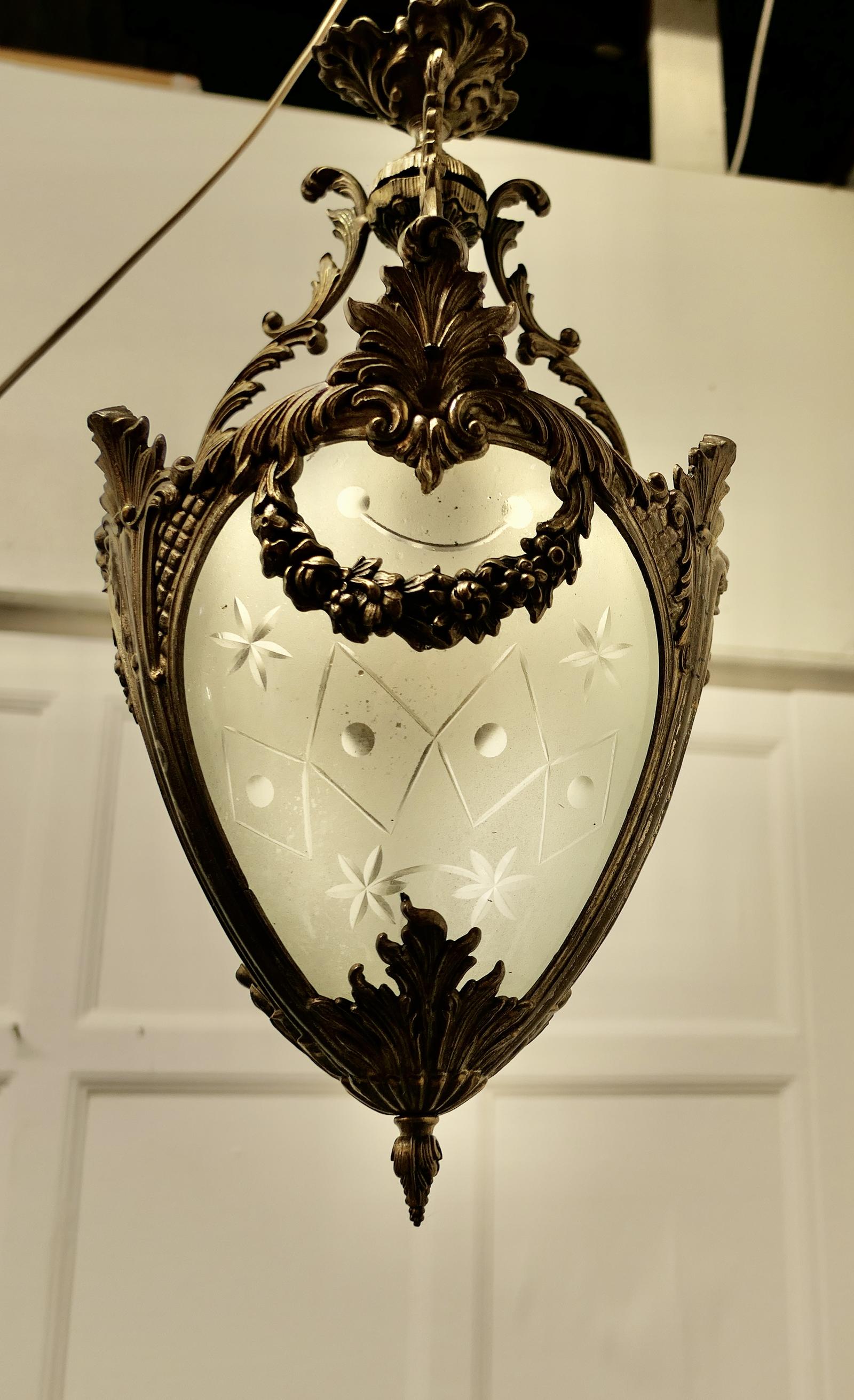 Opalescent Glass & Ormolu Hanging Pendant Light