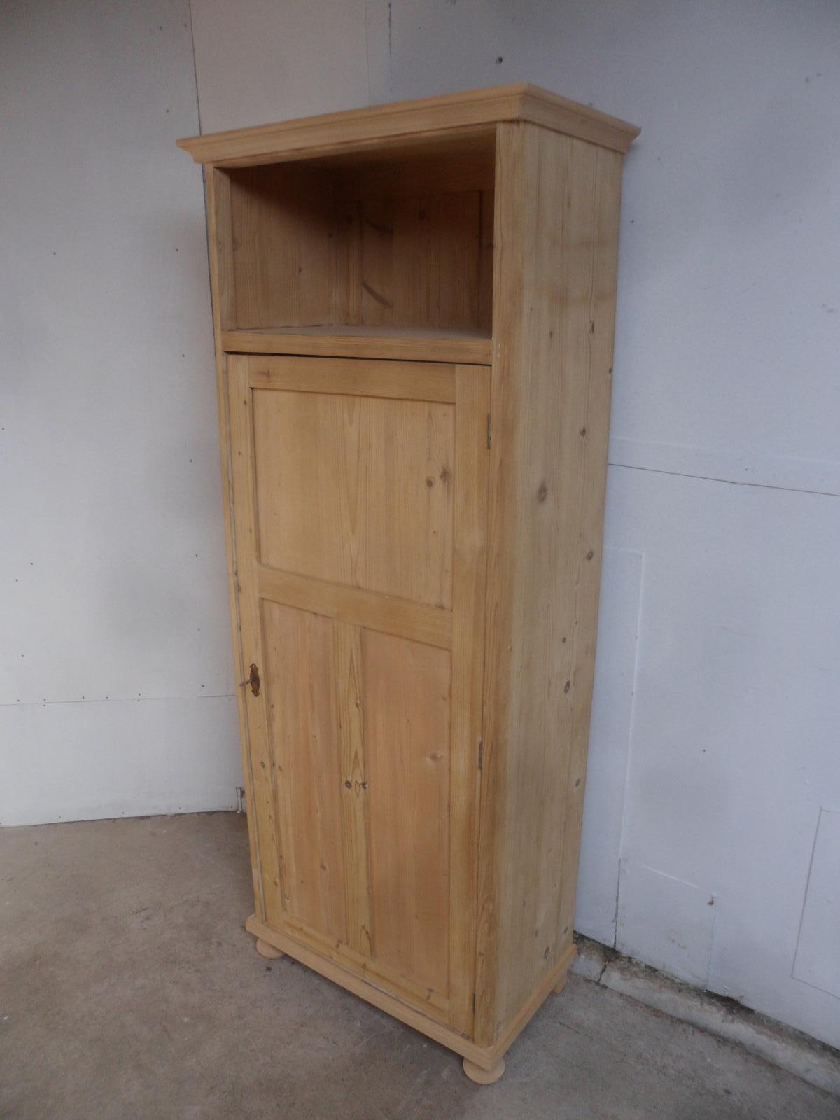Open Tall Antique Pine 1 Door Linen / Kitchen Storage Cupboard to wax / paint