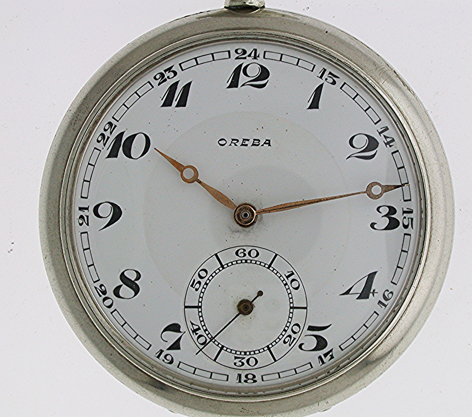 Oreba Open Face Steel Pocket Watch Swiss 1925