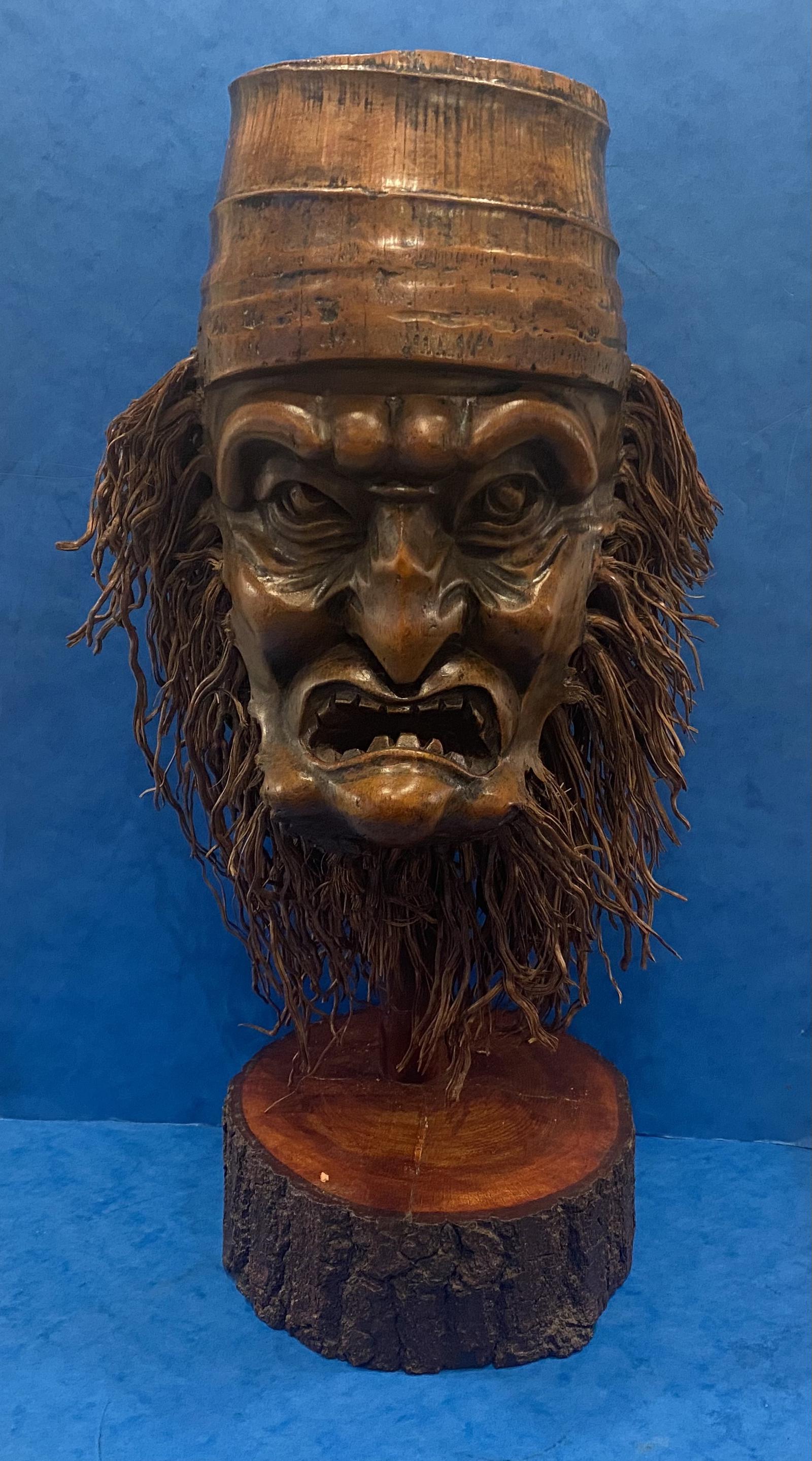 Oriental Carved Bamboo Head on a Stand