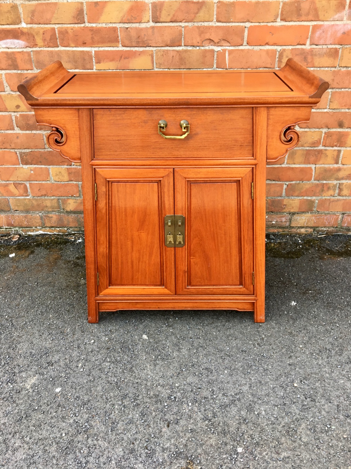 Oriental Hardwood Alter Cabinet with 1 Drawer Above 2 Cupboard Doors