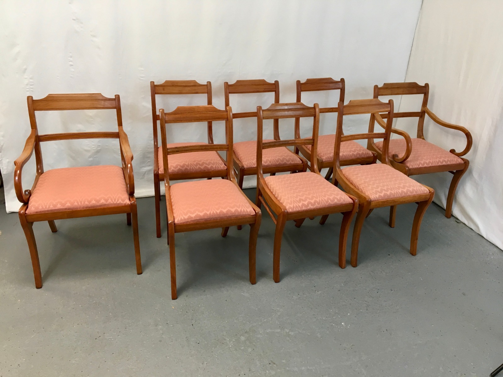 Oriental Hardwood Set of 8 Dining Room Chairs 2 Carvers - 6 Singles