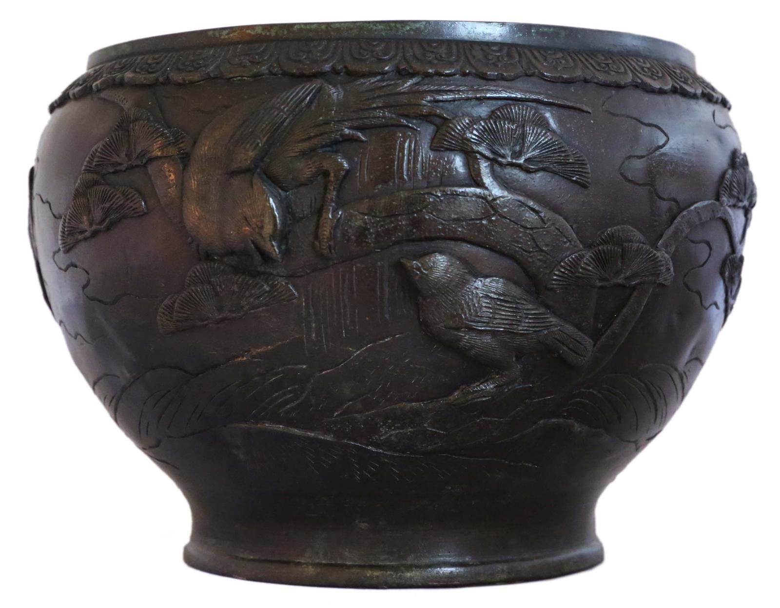 Oriental Japanese 19th Century Bronze Jardinière Planter Bowl Censor Meiji Period