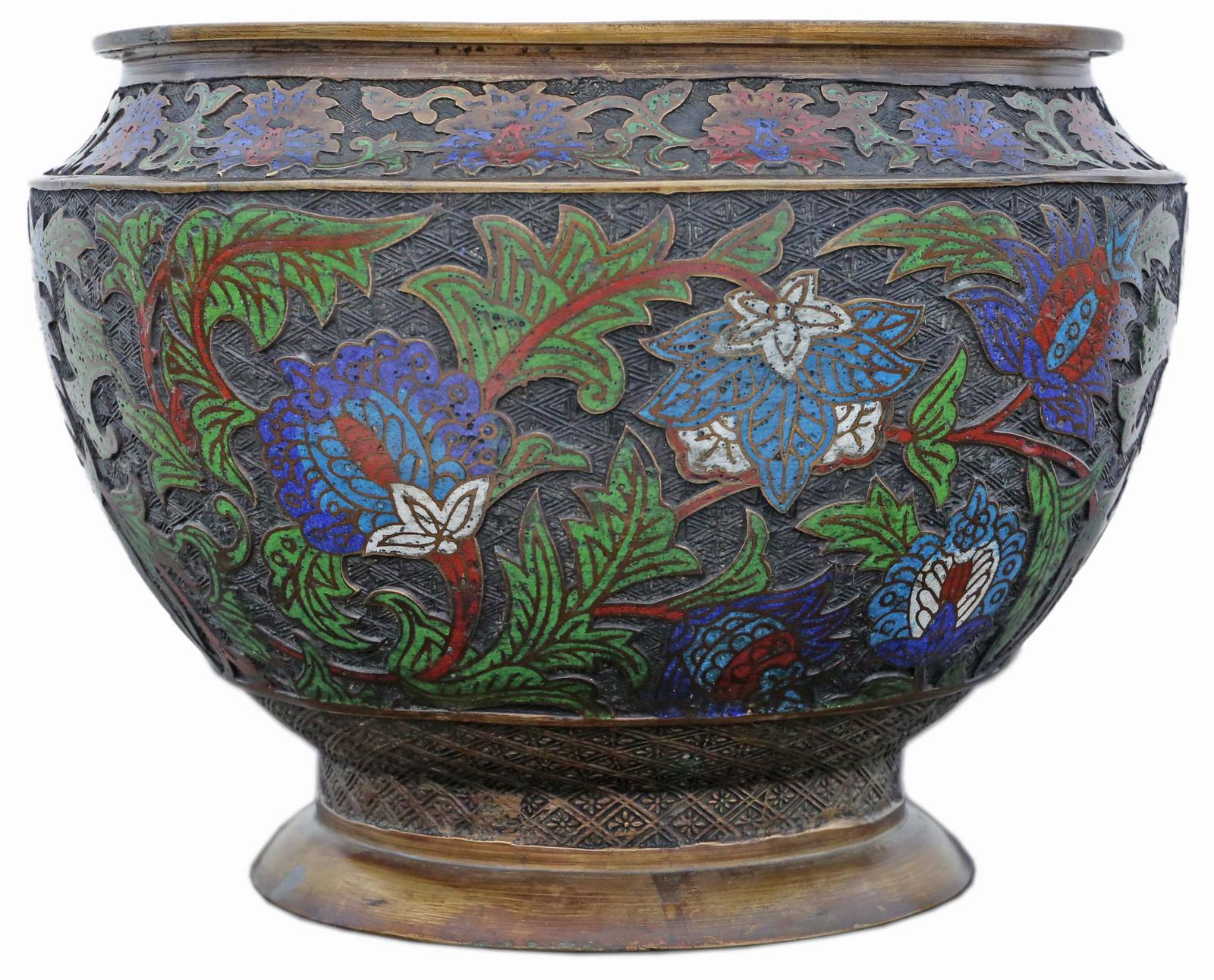 Oriental Japanese Bronze Champleve Enamel Jardiniere Planter Bowl - Meiji Period c.1910 (1 of 6)