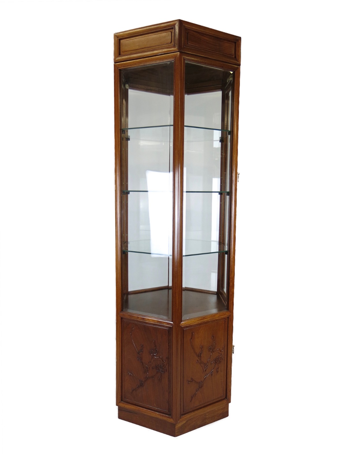 Oriental Rosewood Glazed Shaped Display Cabinet with 4 Doors