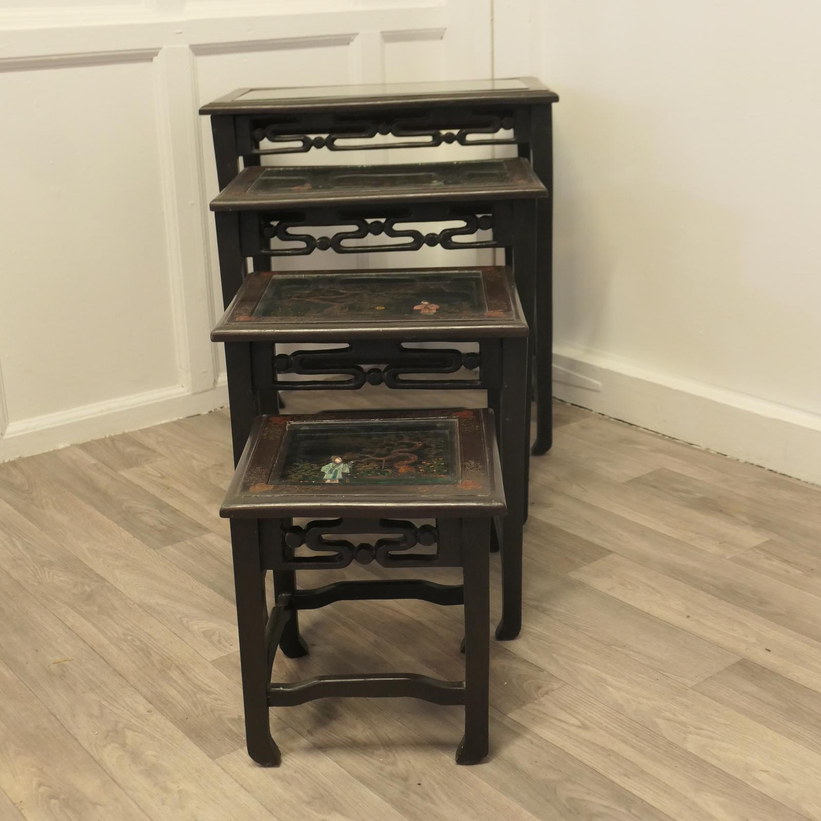 Oriental Style Nest of 4 Tall Lacquer Tables