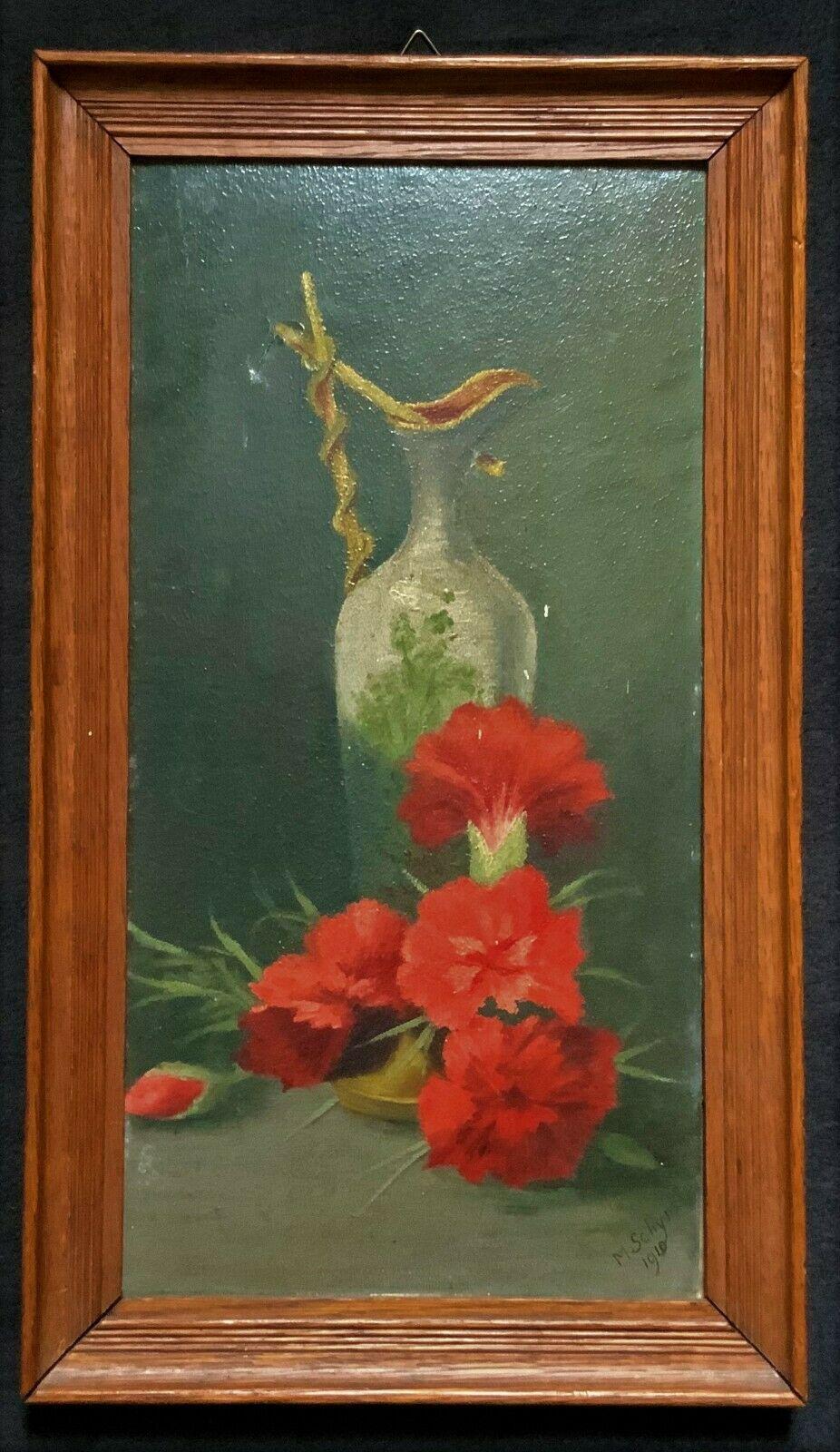 Original 1910 Edwardian Figural Still Life Oil on Board Painting