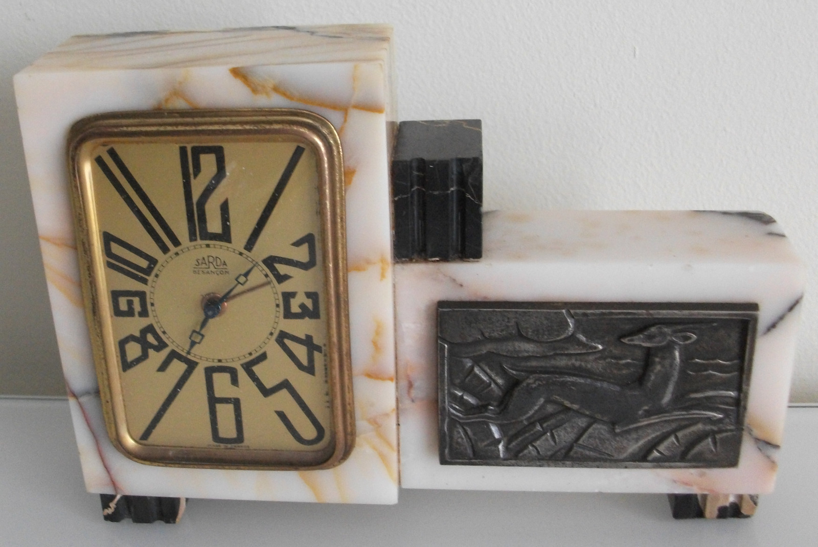 Original 1930s Art Deco French Marble / Bronze 30 Hour Clock