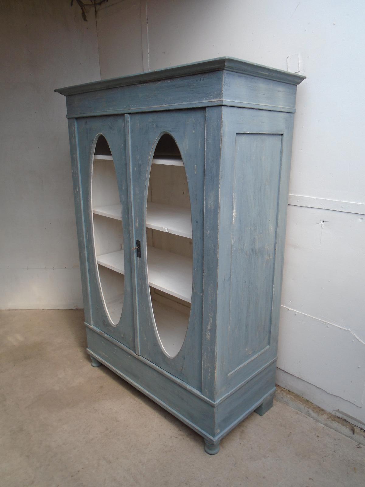 Original 1930s Painted Blue / White Old Pine Oval Display Cabinet