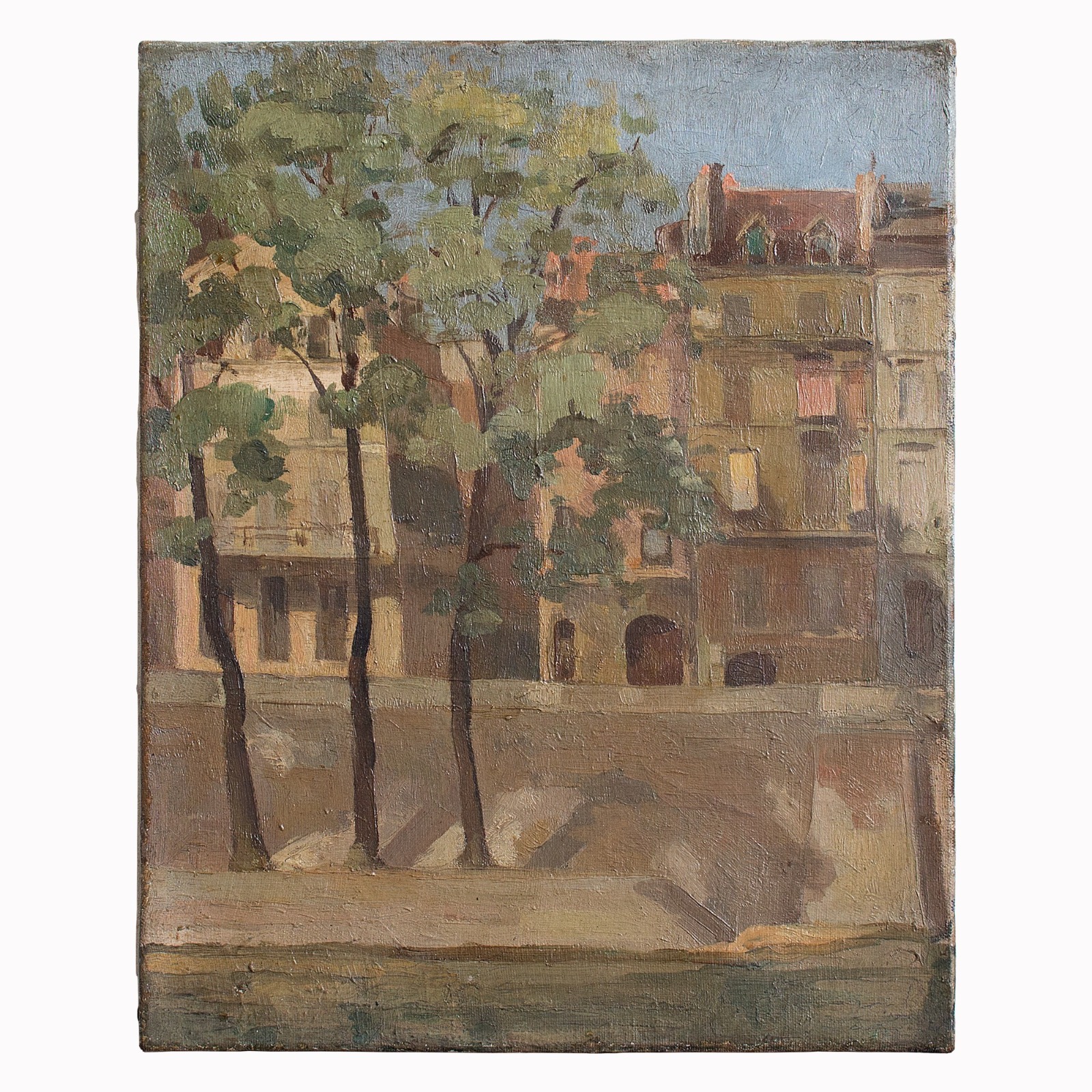 Original 1940s Landscape Painting, Ile Saint Louis, Paris, Oil Painting
