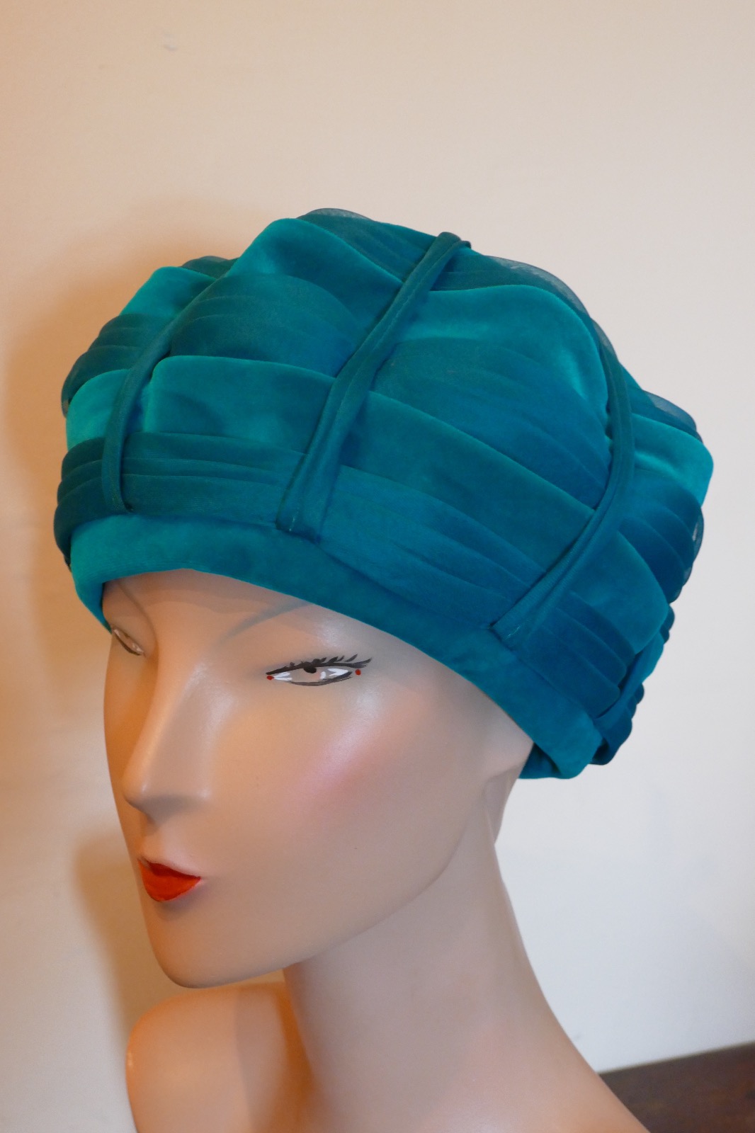 Original 1960s Beret Style Teal Pillbox Hat, Divided Beret