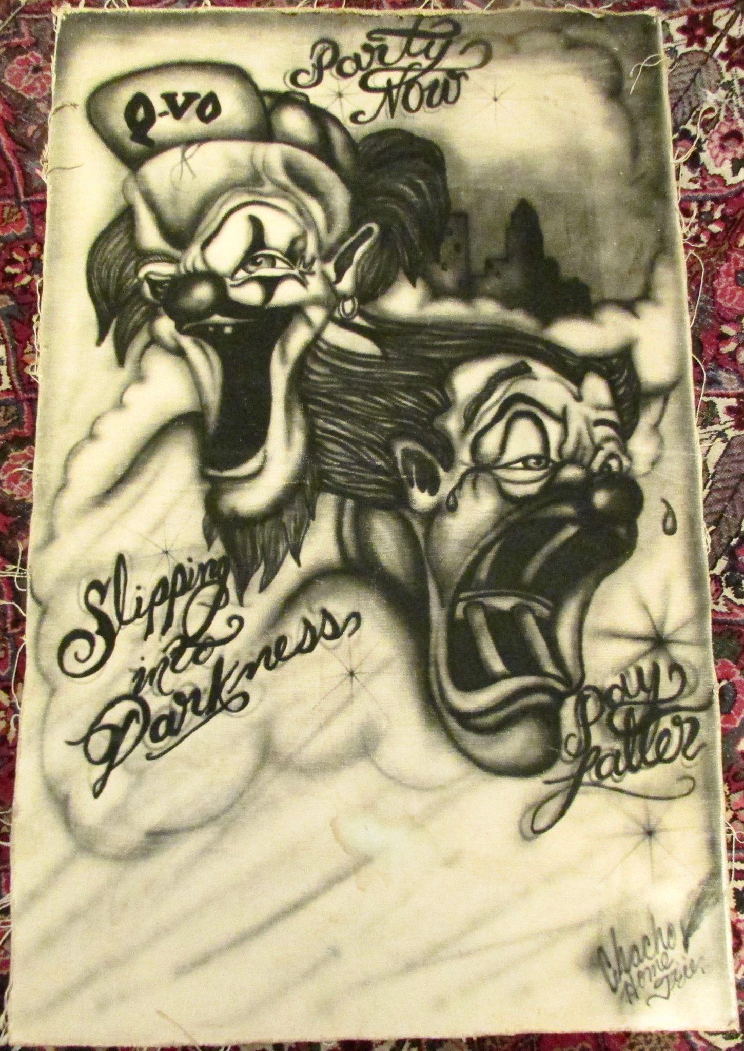 Original 1970's Chicano Prison Art From California Large Canvas Clown Painting