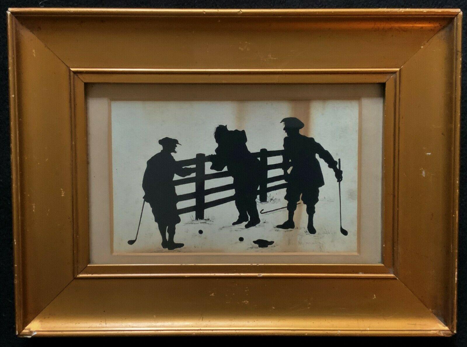 Original 19th Century Antique Silhouette Painting of 3 Victorian Golfers