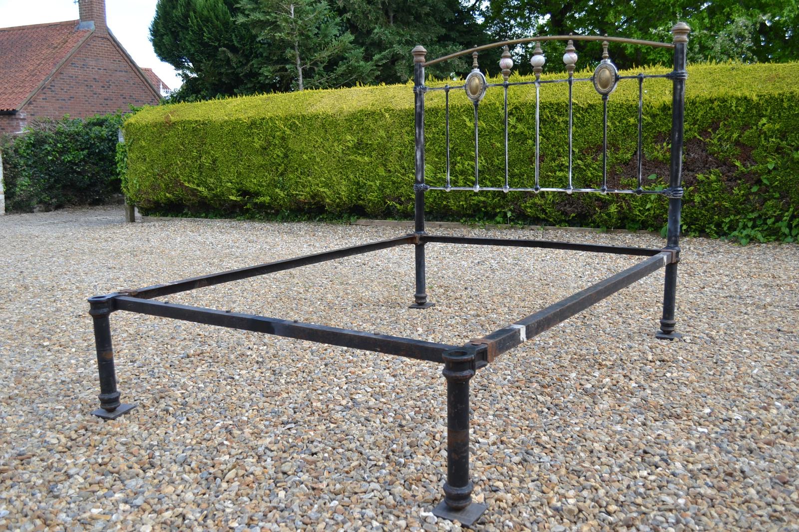 Original Antique Brass & Iron 4ft 6in Footless Double Bed / Bedstead