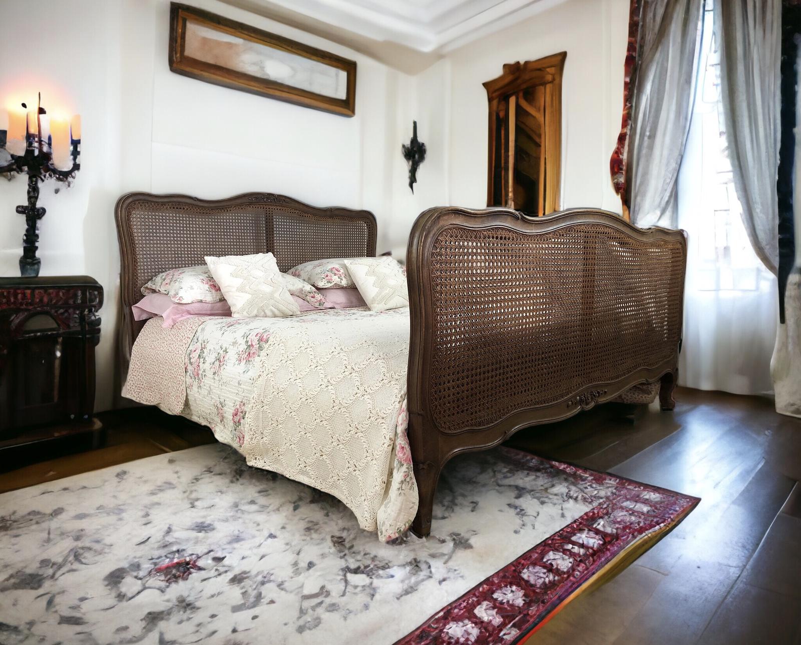 Original Antique French Cane Bed Frame Queen Size