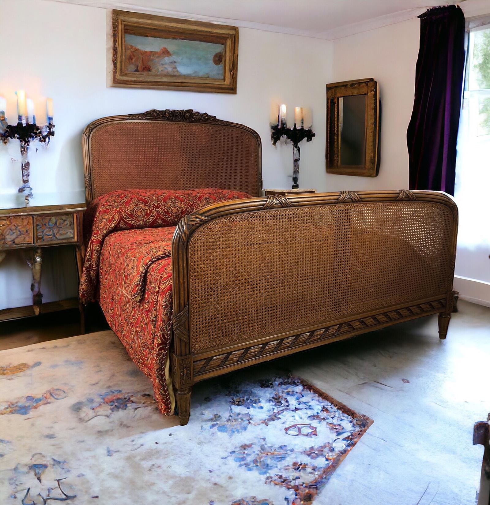Original Antique French Cane Bed Frame ‘Valentin Blin Paris’